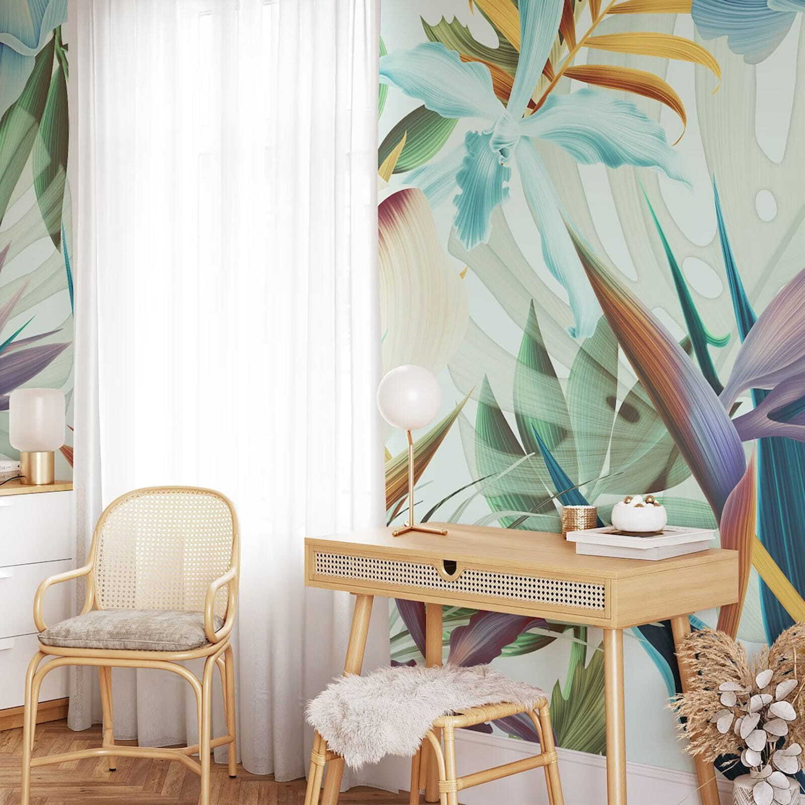Sentite che il vostro spazio ha bisogno di un tocco di vita? Il “Carta da parati Vibrant tropical leaves and blooms” fa al caso vostro. Immaginate di entrare nella vostra stanza e di essere accolti da un tripudio di verde lussureggiante e fiori vivaci: è come avere la vostra fetta di paradiso personale! Ogni foglia e fiore sembra danzare sulla parete, portando un’esplosione di colore ed energia. Perfetto per gli amanti della natura o per chi desidera una fuga in un paradiso tropicale senza uscire di casa. Questo murales è un elemento di conversazione, un po’ di gioia ad ogni sguardo. È più di un arredo: è un’esperienza! 🌿🌸