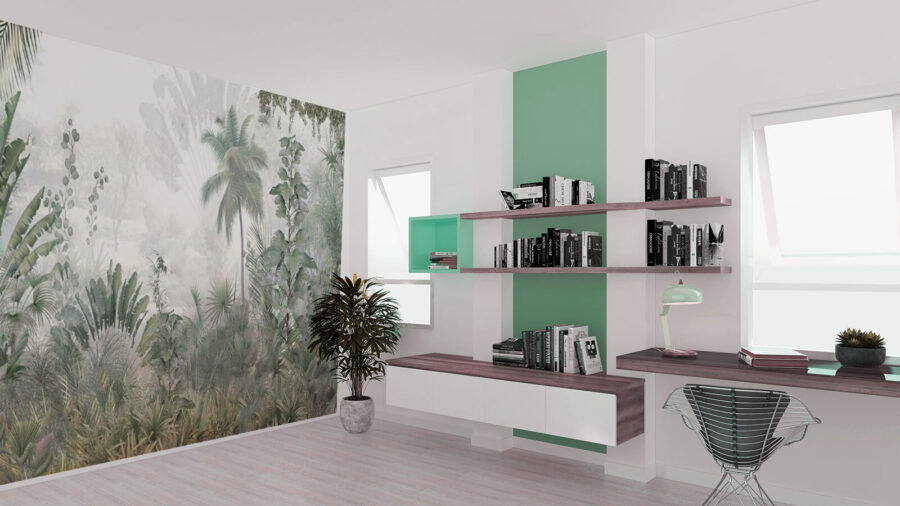 Texture e colori così ricchi che sembra quasi di sentire il canto degli uccelli e la brezza calda. È come se Madre Natura avesse progettato il vostro arredamento! Questo murale crea un’esperienza immersiva nella giungla, senza gli insetti e l’umidità, ovviamente. È ideale per i temi tropicali e si abbina bene agli accenti in legno o all’arredamento minimalista. Chi non vorrebbe aggiungere una dose di avventura alla propria vita quotidiana?