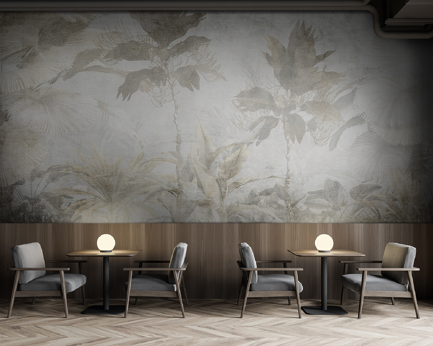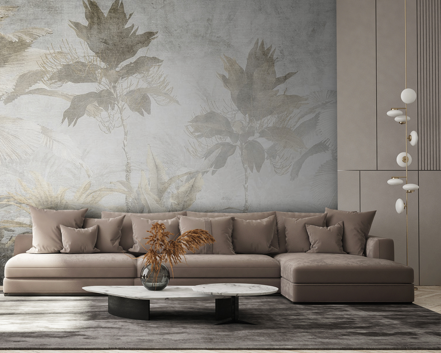 Questo murale si adatta senza sforzo a qualsiasi ambiente, sia esso un accogliente salotto, una serena camera da letto o persino un caffè chic. I toni tenui creano un’atmosfera pacifica, come un dolce sussurro nella brezza del mattino. E le foglie di palma? Aggiungono un tocco esotico che vi farà sentire come trasportati in un paradiso tropicale.