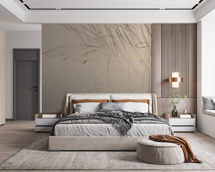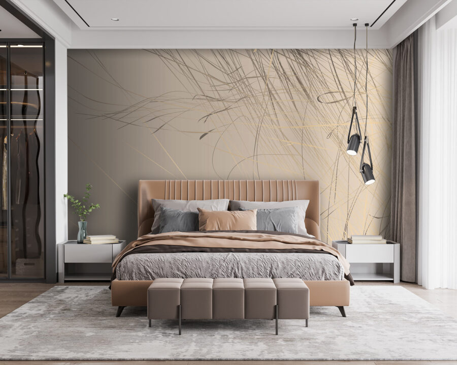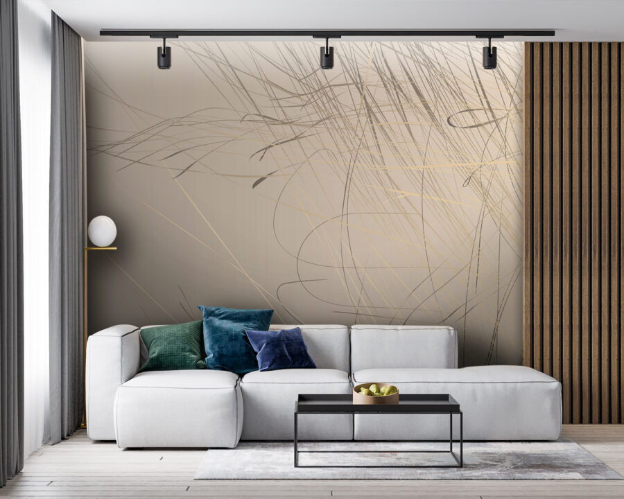 Immaginate di entrare in una stanza e vedere questa parete: “Wow”, vero? Questo murale, con le sue linee astratte che danzano su un delicato sfondo beige, sussurra praticamente eleganza. È proprio il tipo di pezzo che non grida ma si fa notare. Perfetto per chi pensa che le pareti semplici siano troppo, beh, semplici. Lo adorereste in un salotto o anche in uno studio chic. È come aggiungere un tocco di creatività senza sollevare un pennello. Immaginate un tardo pomeriggio, con la luce del sole che entra e cattura le linee giuste: uno zen istantaneo.