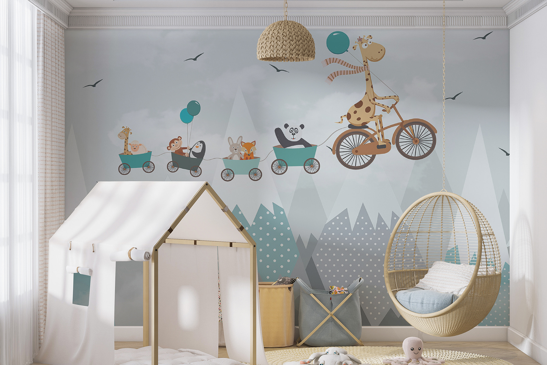 Volete aggiungere un po’ di fantasia alla stanza dei vostri figli? Date un’occhiata al “Murales Giraffa in bicicletta”: è come un delizioso sogno ad occhi aperti schizzato sul muro. Questo divertente murale mostra un’avventurosa giraffa che pedala attraverso un paesaggio da sogno, trainando una parata di adorabili animali. I tenui colori pastello e le scene giocose trasporteranno il vostro piccolo in un mondo di immaginazione, rendendolo perfetto per le camerette o le stanze dei giochi. Immaginate che le storie della buonanotte si trasformino in viaggi incredibili con questo sfondo. E poi, gli incantevoli pois e le montagne? Troppo carini. Questo murale non è solo una decorazione, ma un biglietto per l’avventura ogni giorno.
