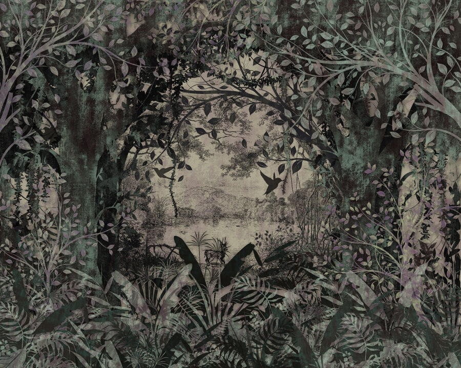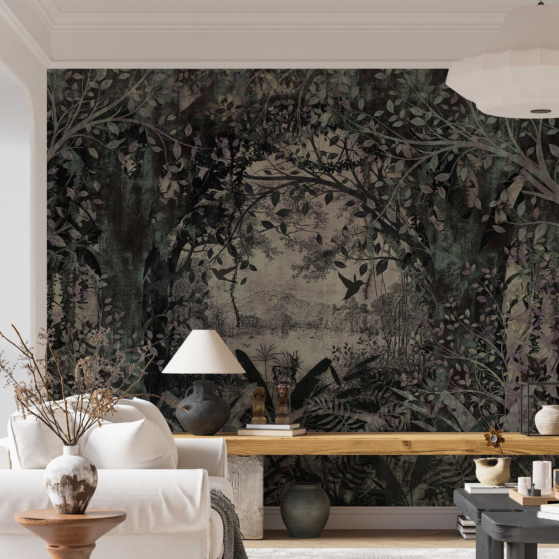 Carta da parati Foresta incantata incorniciata dal fogliame. (SKU: u93600)
