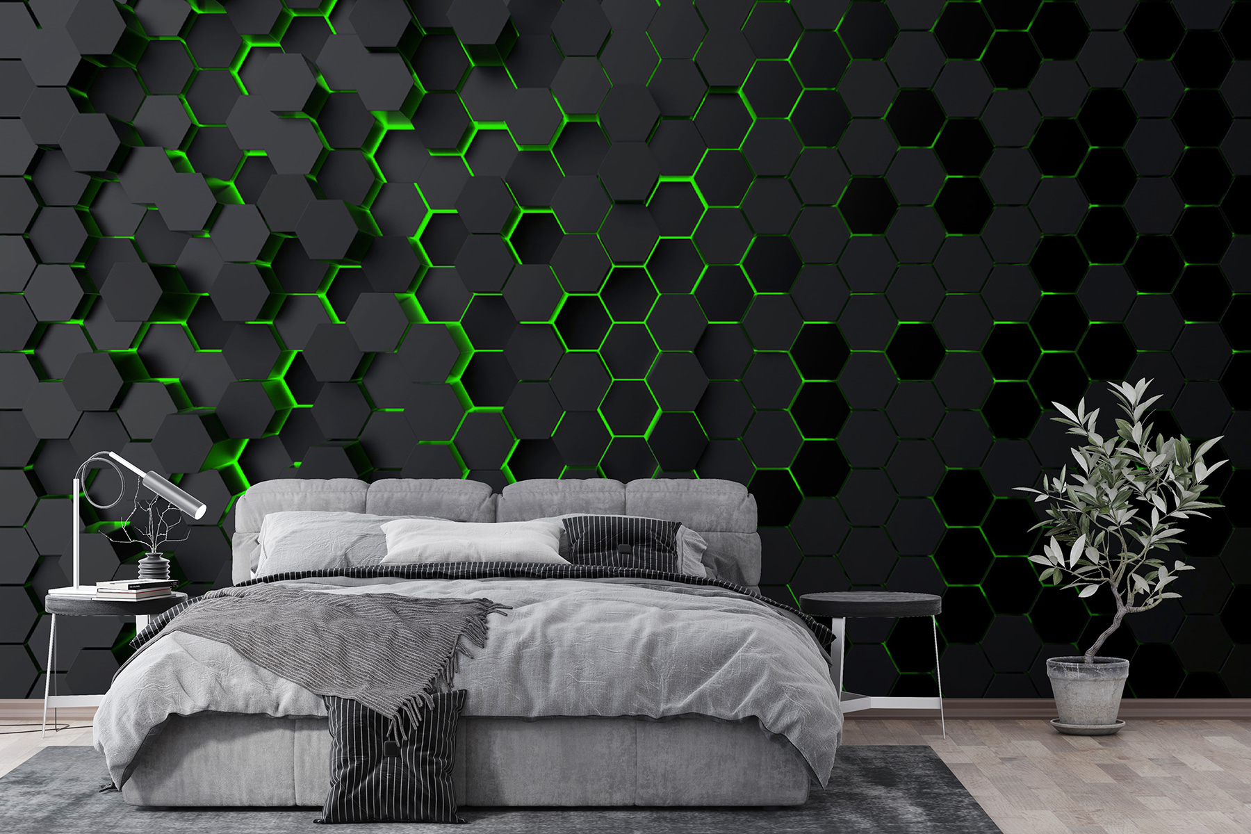 2 recensioni per Carta da parati Esagoni neri con luce verde