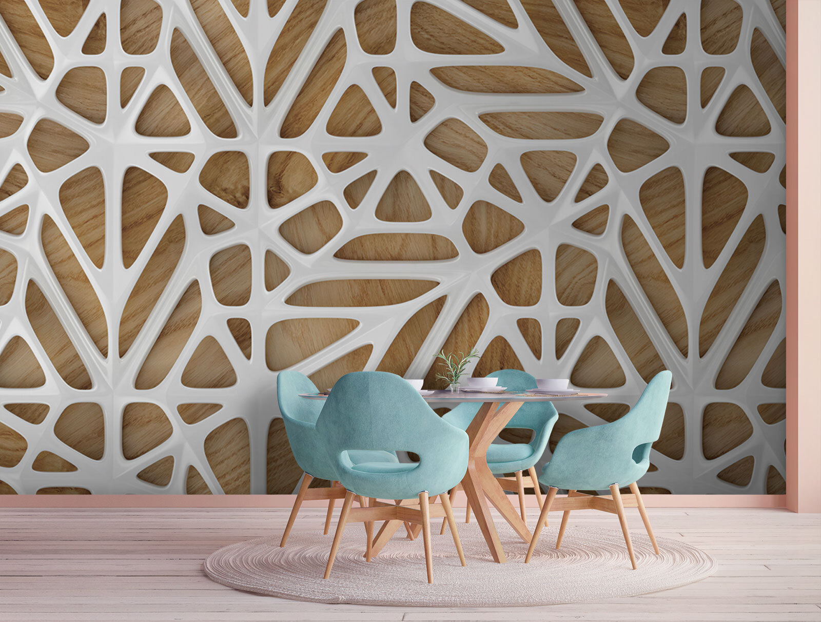 Guardate esattamente come apparirà il vostro spazio con la nuova carta da parati prima di acquistarla. Visualizzazione professionale da parte di designer esperti senza alcun costo o obbligo di acquisto.