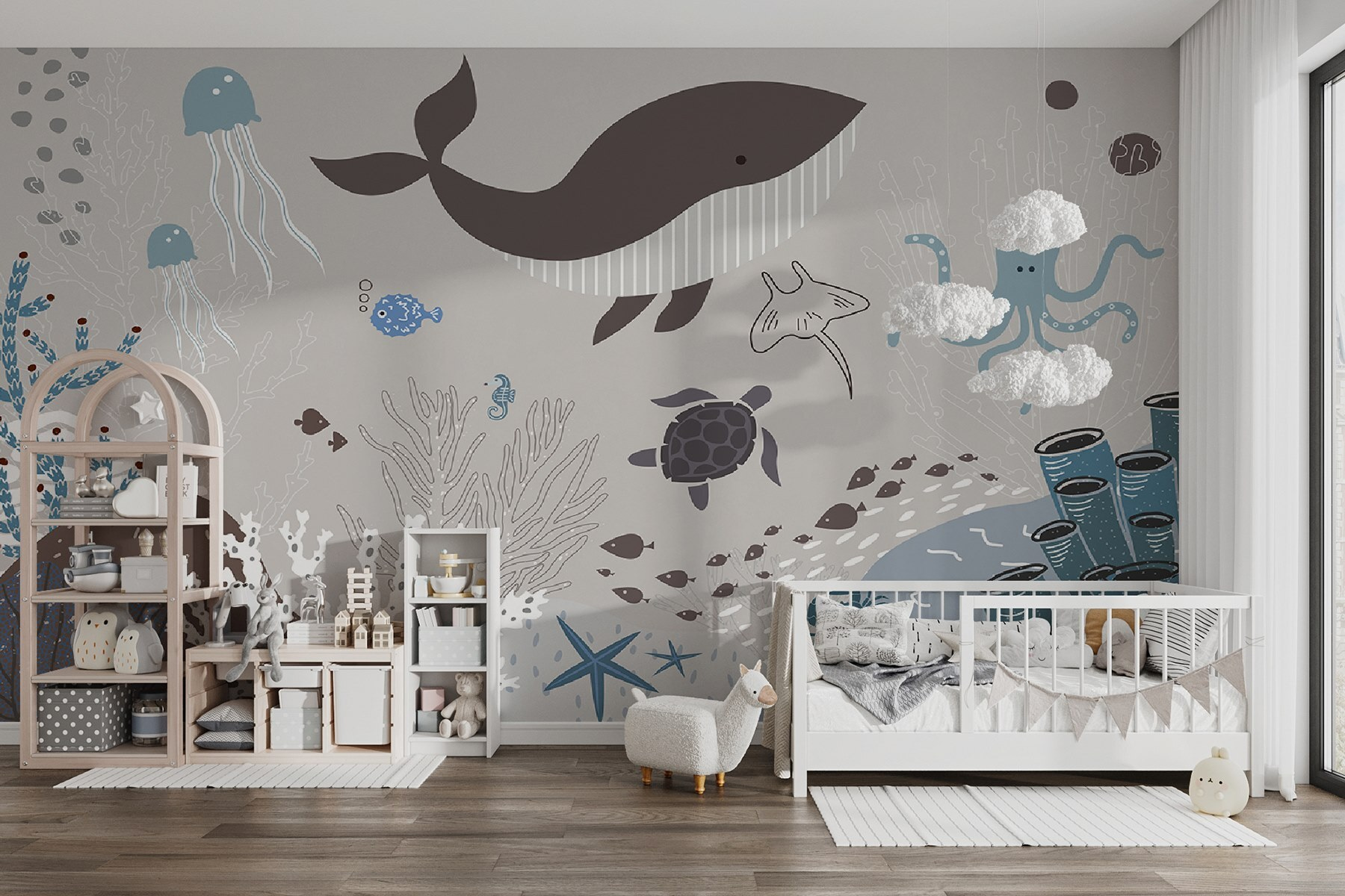 Immaginate l’espressione di eccitazione sul viso del vostro piccolo mentre si addormenta circondato da simpatiche creature marine. Non è solo arredamento, è un’avventura, ogni giorno. Che si tratti di abbellire una cameretta o di aggiungere un po’ di brio alla stanza dei giochi, questo murale fa al caso vostro. Carino, rassicurante e super cool: cosa c’è da non amare?