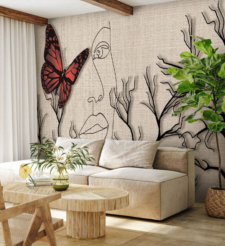 Trasforma il tuo spazio con questo splendido murale che raffigura una farfalla che danza vicino al viso di una donna, avvolta da delicati rami. Non è solo arte, è una dichiarazione, come avere un momento di serenità immortalato sulla tua parete. Pensa a svegliarti ogni giorno davanti a questa bellezza: la vivace farfalla porta una ventata di vita, mentre le espressioni delicate evocano un senso di calma. Perfetto per un accogliente salotto o un angolo creativo, stimola la curiosità e la conversazione. Inoltre, chi non ama le farfalle? Sono come piccoli artisti della natura, che aggiungono fascino e fantasia. Abbraccia un’atmosfera che è unicamente tua!