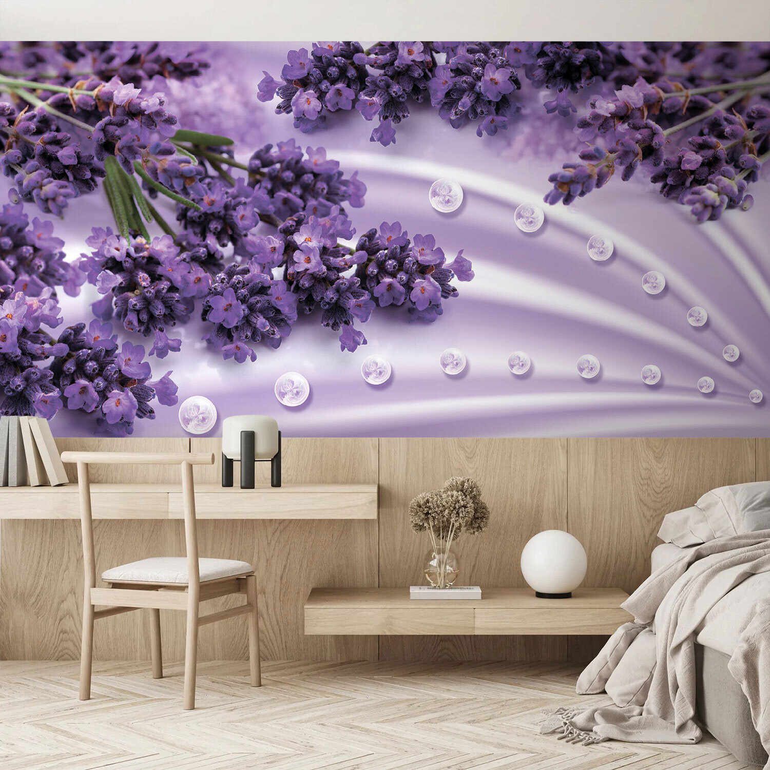 Trasformare il vostro spazio non è mai stato così facile con questo splendido murale con fiori di lavanda su uno sfondo morbido. Immaginate di entrare in una stanza che sembra un pomeriggio ventilato in un campo di lavanda, sereno ed edificante. I fiori delicati risaltano sui colori tenui, donando un senso di calma perfetto per i momenti di relax o di creatività. Immaginate di accoccolarvi con un buon libro, con la scena floreale che vi avvolge come un abbraccio confortante. Non si tratta solo di arredamento, ma di un’occasione per sfuggire al caos quotidiano e lasciar vagare l’immaginazione. Chi non lo vorrebbe?