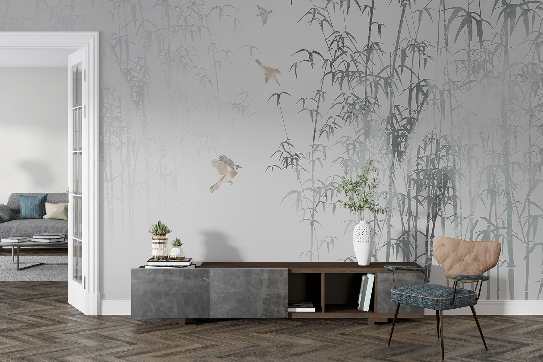 Trasformate il vostro spazio con questo incantevole murale che raffigura uccelli che si librano in un lussureggiante sfondo di bambù. Immaginate come ci si sente a svegliarsi e vedere queste graziose creature planare; è come avere una fetta di natura proprio a casa vostra. Le tonalità tenui e le vibrazioni serene aggiungono un tocco rilassante, perfetto per gli angoli di lettura o i soggiorni più vivaci. Inoltre, apre senza sforzo qualsiasi spazio, facendo sembrare le stanze più grandi e più ariose. Davvero, è il tipo di arredamento che sussurra: “Rilassati, te lo sei meritato”. Tuffatevi in un piccolo angolo di paradiso: le vostre pareti non sono mai state così belle!