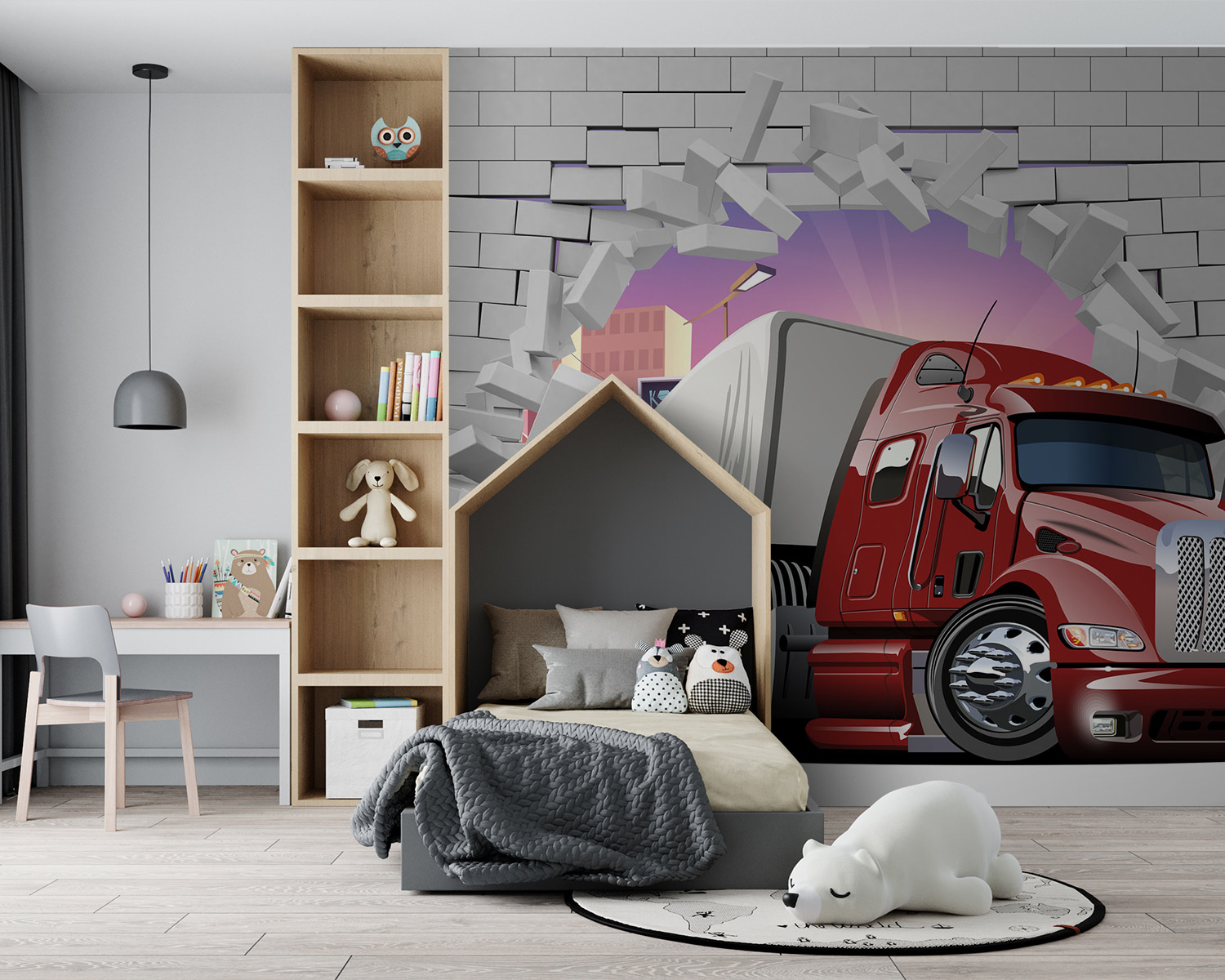 Questo murale si chiama “Truck breaks through the wall” (il camion che sfonda il muro) e non ha nulla da invidiare al suo nome! Immaginate di avere un enorme camion rosso che sfonda la parete del vostro salotto: è come vivere una scena di un film d’azione. Avete un bambino ossessionato dalle auto? Questo li lascerebbe a bocca aperta e forse li convincerebbe a fare i compiti in un lampo (incrociando le dita)! I dettagli sono così nitidi che fanno quasi venire voglia di fare una capriola! Perfetto per aggiungere un tocco di allegria alla stanza dei bambini o al garage. La gente farà un doppio sguardo ogni volta che passerà di lì. Inoltre, non è solo per i bambini: gli appassionati di auto ne sarebbero entusiasti. Date un tocco di classe al vostro spazio con questo murale accattivante e in grado di stimolare la conversazione. È inaspettato, unico e un po’ ribelle!
