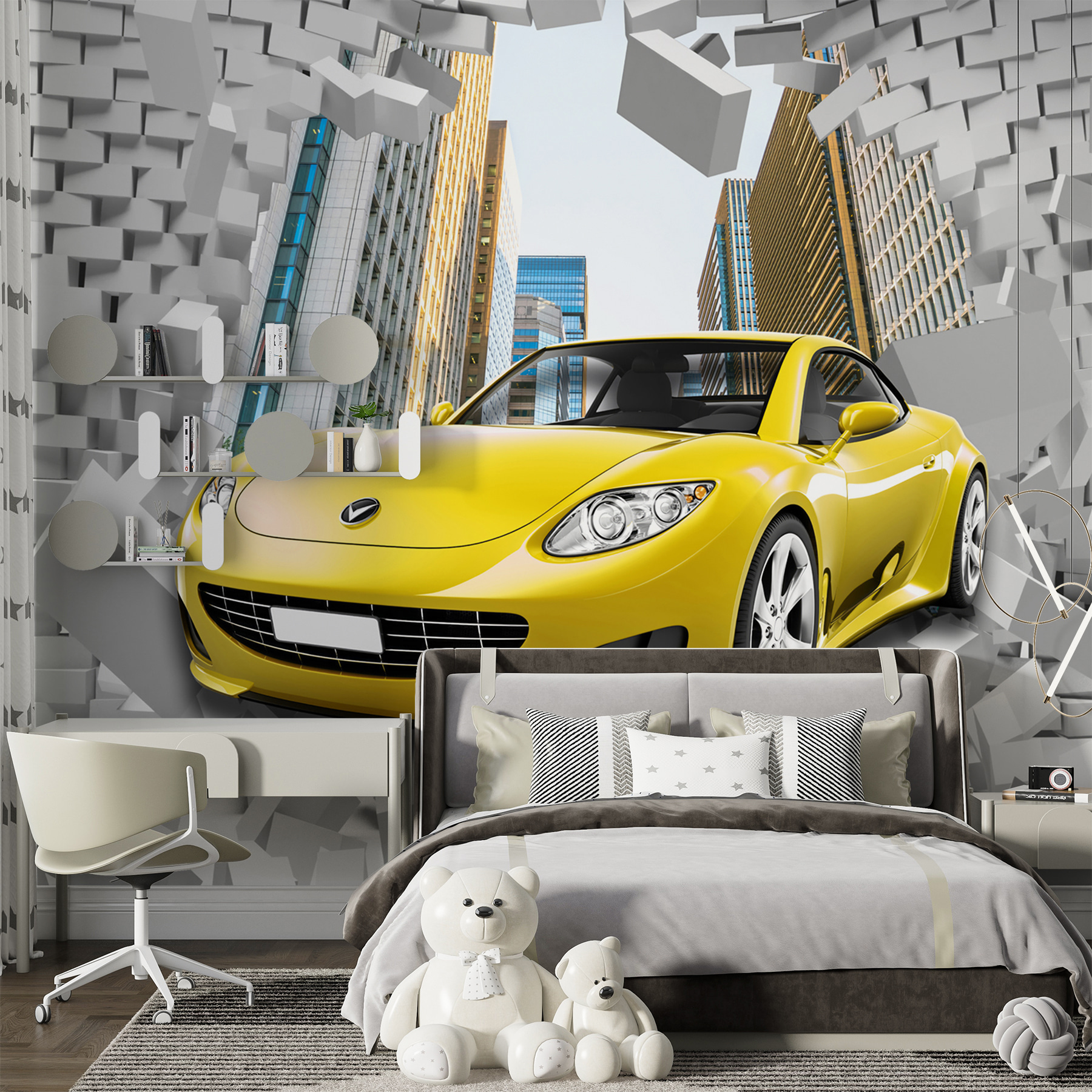 Avete mai pensato di dare un tocco di emozione alla vostra stanza? Immaginate un’auto sportiva che sfonda un muro di mattoni proprio sulla vostra parete! Questo murale è perfetto se in casa c’è un piccolo appassionato di auto, o anche solo qualcuno che ama un po’ di drammaticità. Fa parte delle collezioni “Automobile” e “Brick Wall”, ma è fantastico anche per le stanze dei bambini. L’energia dei mattoni che si schiantano e l’elegante auto gialla aggiungono un tocco di colore e di azione. È come aggiungere una dose di adrenalina al vostro arredamento. Davvero, riuscite a immaginare le facce dei vostri ospiti? Un vero spettacolo.