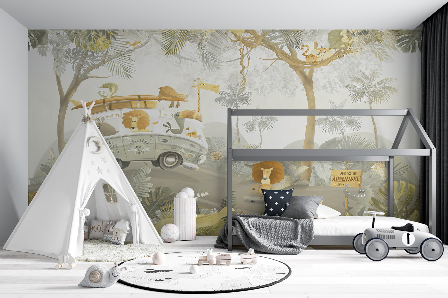 Perfetto per i piccoli esploratori, questo murale aggiunge un tocco di fantasia a qualsiasi spazio. Ha un’atmosfera da libro di fiabe, che porta immediatamente sorrisi e stimola la creatività. Forse la storia della buonanotte ora coinvolgerà un leone che pattina al tramonto, o forse un magico tour nella giungla ogni mattina. Conveniente e affascinante, trasforma le pareti in un paese delle meraviglie narrativo, uno sfondo perfetto per i sogni dell’infanzia e i momenti di gioco. Ogni sguardo a questo murale ricorda che l’avventura è dietro l’angolo.
