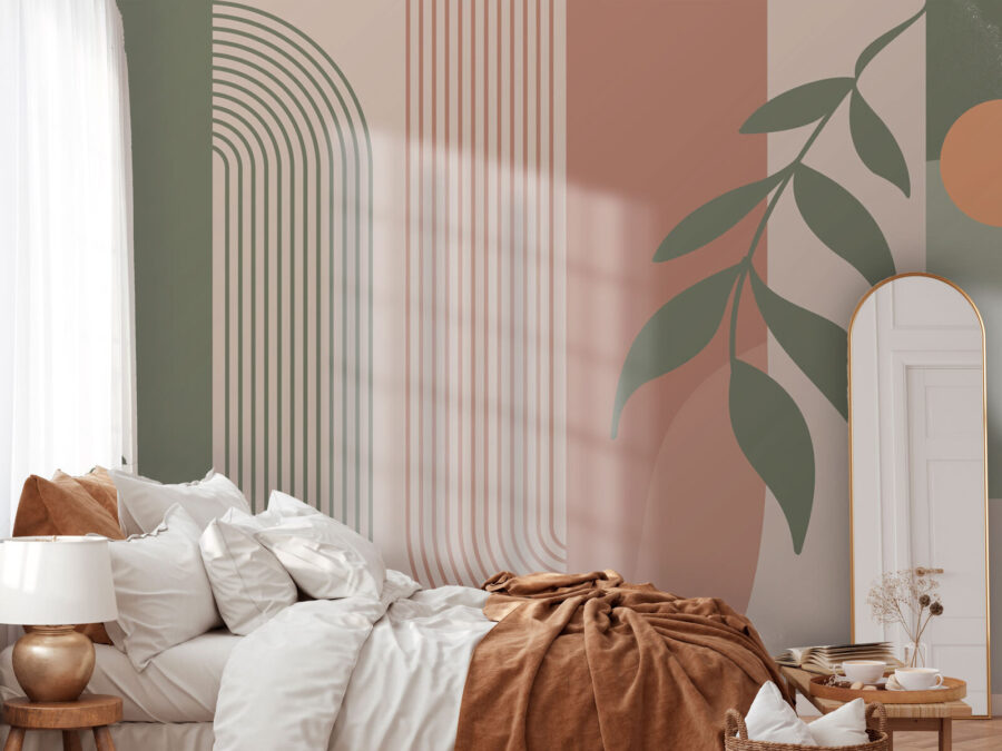 Date un’occhiata a questo splendido murale, “Foglie astratte e motivi geometrici”. È come una miscela di arte moderna direttamente sulla vostra parete! I toni della terra e le forme slanciate emanano un’atmosfera accogliente e sofisticata, perfetta per ogni stanza. Immaginatevi di rilassarvi dopo una lunga giornata e di sentirvi in uno spazio zen ed elegante. È come avere una galleria d’arte personale. Inoltre, non è solo elegante: è un ottimo spunto di conversazione. Gli amici vengono a trovarvi e tutti parlano del vostro gusto fantastico. Un mix perfetto di calma e chic!