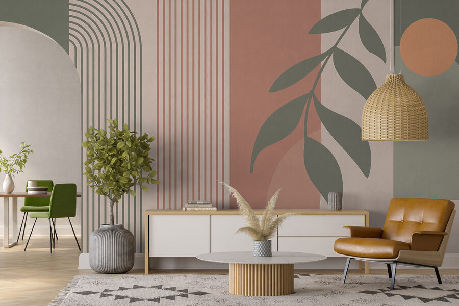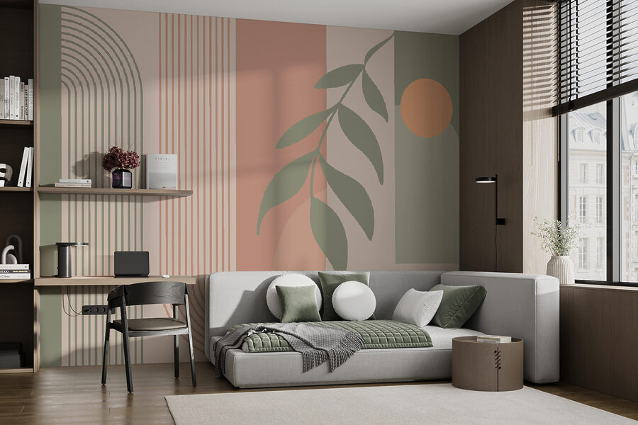 1 recensione per Carta da parati Foglie astratte e motivi geometrici