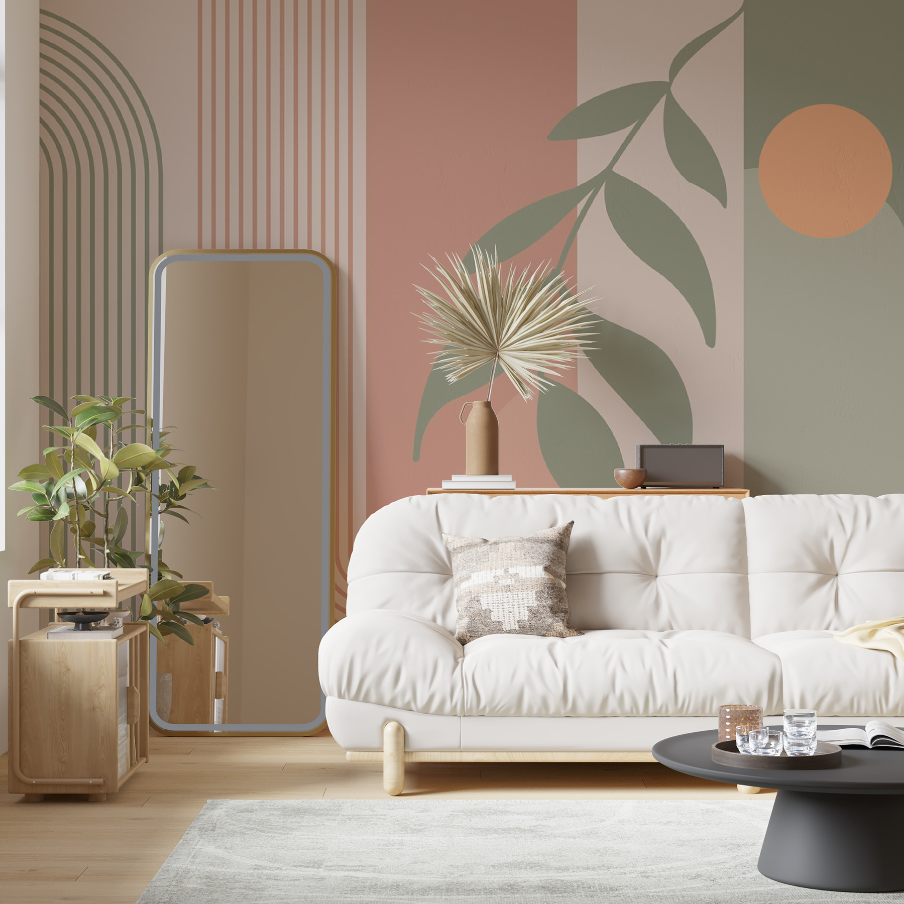 Date un’occhiata a questo splendido murale, “Foglie astratte e motivi geometrici”. È come una miscela di arte moderna direttamente sulla vostra parete! I toni della terra e le forme slanciate emanano un’atmosfera accogliente e sofisticata, perfetta per ogni stanza. Immaginatevi di rilassarvi dopo una lunga giornata e di sentirvi in uno spazio zen ed elegante. È come avere una galleria d’arte personale. Inoltre, non è solo elegante: è un ottimo spunto di conversazione. Gli amici vengono a trovarvi e tutti parlano del vostro gusto fantastico. Un mix perfetto di calma e chic!