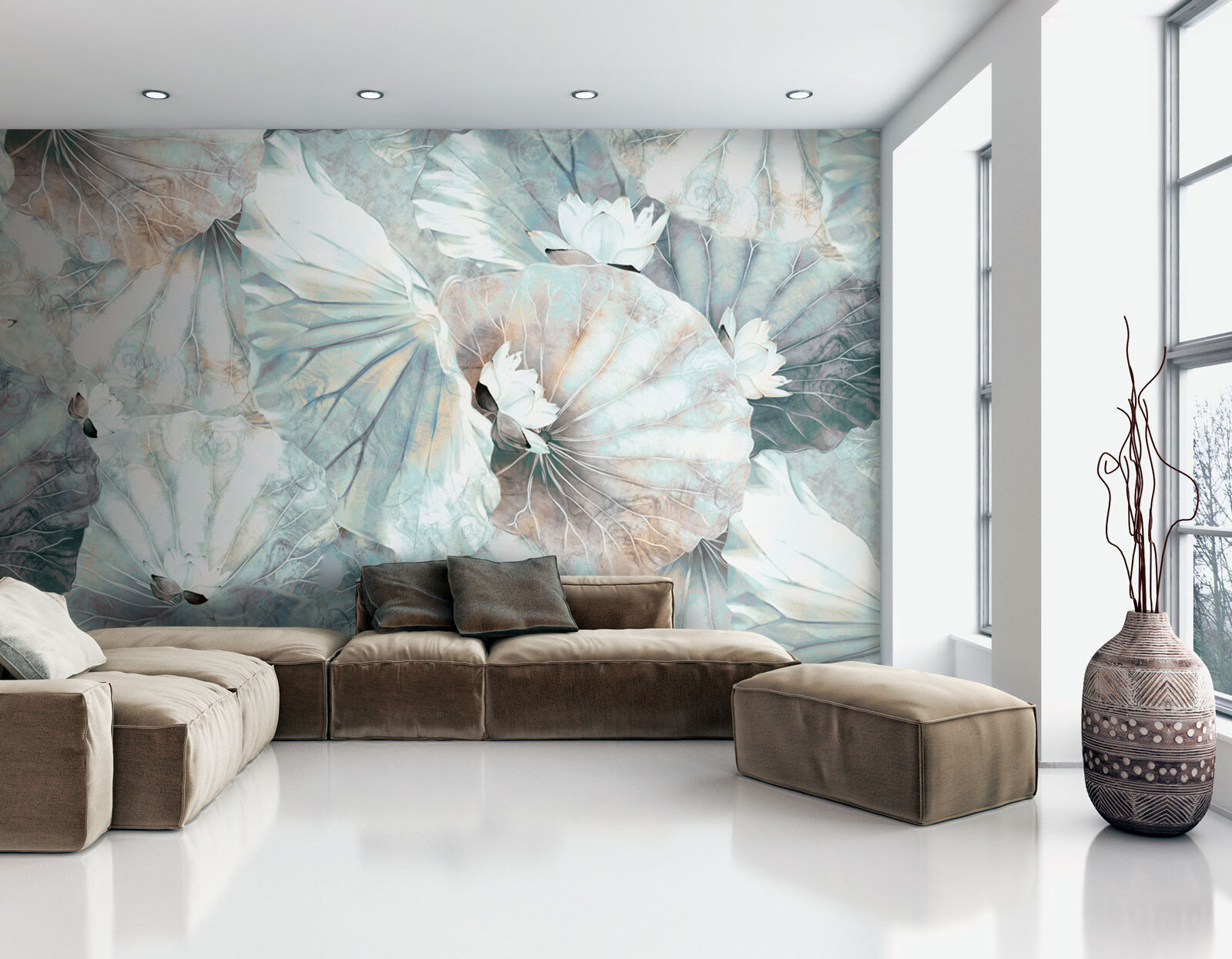 Trasformate il vostro spazio in una fuga serena con questo elegante murale con fiori e foglie di loto. Immaginate di entrare in un’oasi rilassante ogni volta che entrate nella stanza. I colori tenui e smorzati creano un’atmosfera leggera e ariosa, perfetta sia per angoli accoglienti che per incontri vivaci. È come se il sussurro della natura vi invitasse a rilassarvi, respirare e sognare un po’. Immaginate di aggiungere questo murale all’ufficio di casa per un tocco di ispirazione o in un angolo di lettura per elevare il tempo delle storie. Questo disegno non si limita a decorare, ma trasforma le pareti in una tela di tranquillità, ricordando che la bellezza può essere trovata in ogni piccolo dettaglio. Chi avrebbe mai immaginato che una parete potesse avere un tale fascino?