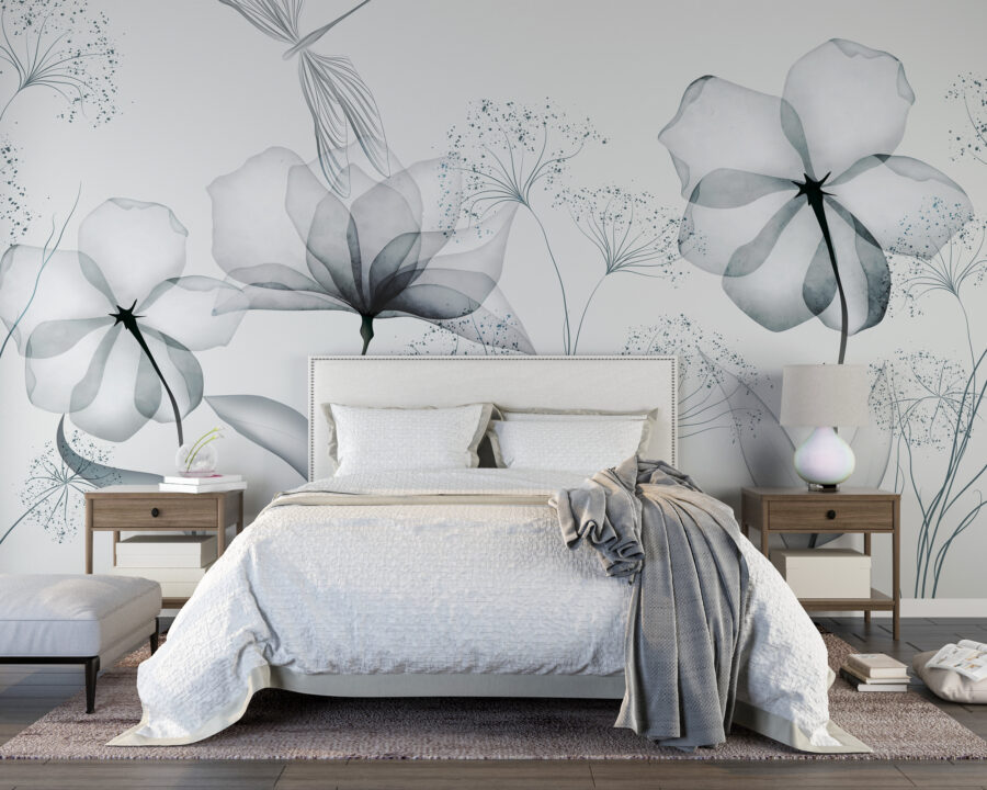 2 recensioni per Carta da parati Fiori delicati in un design monocromatico