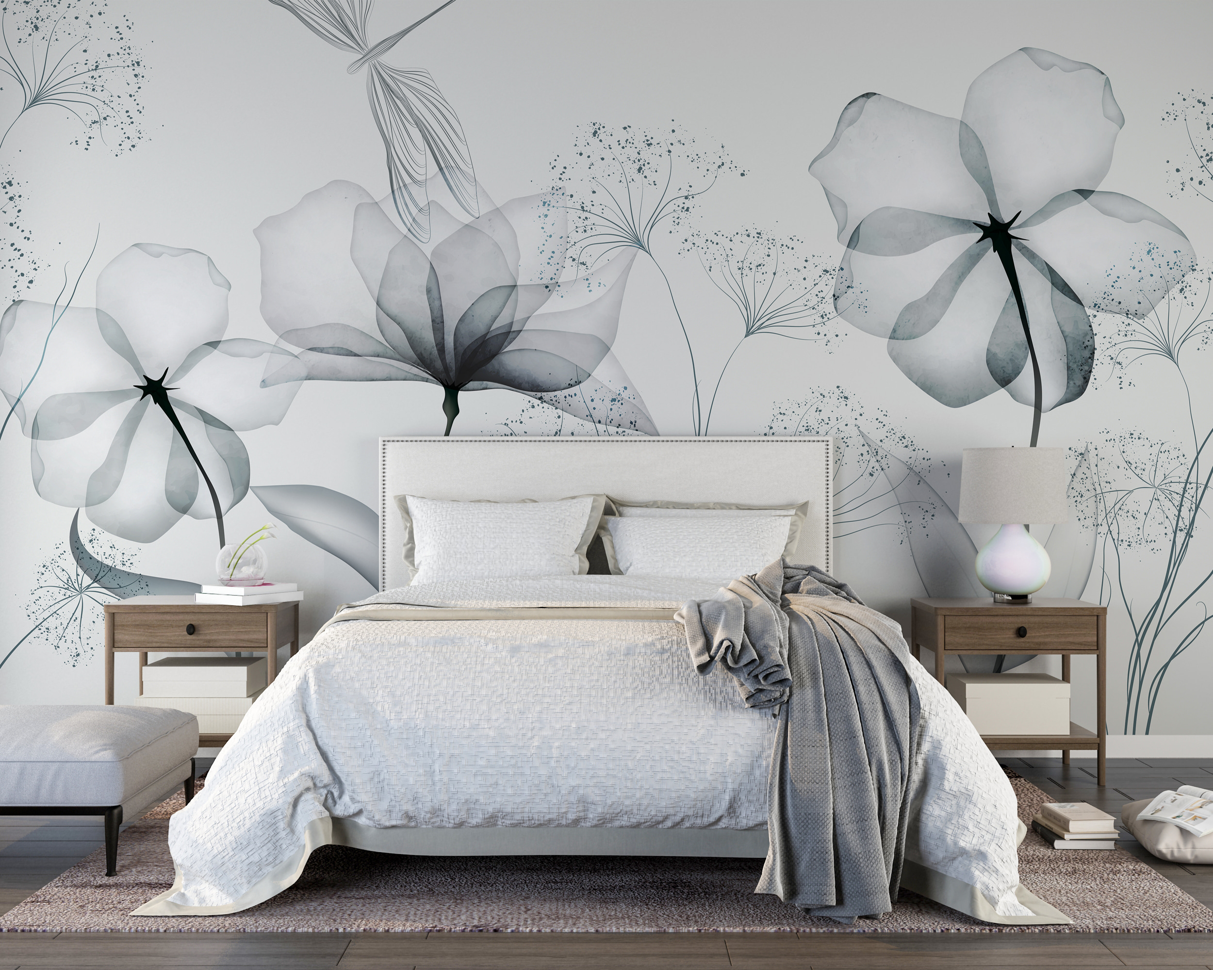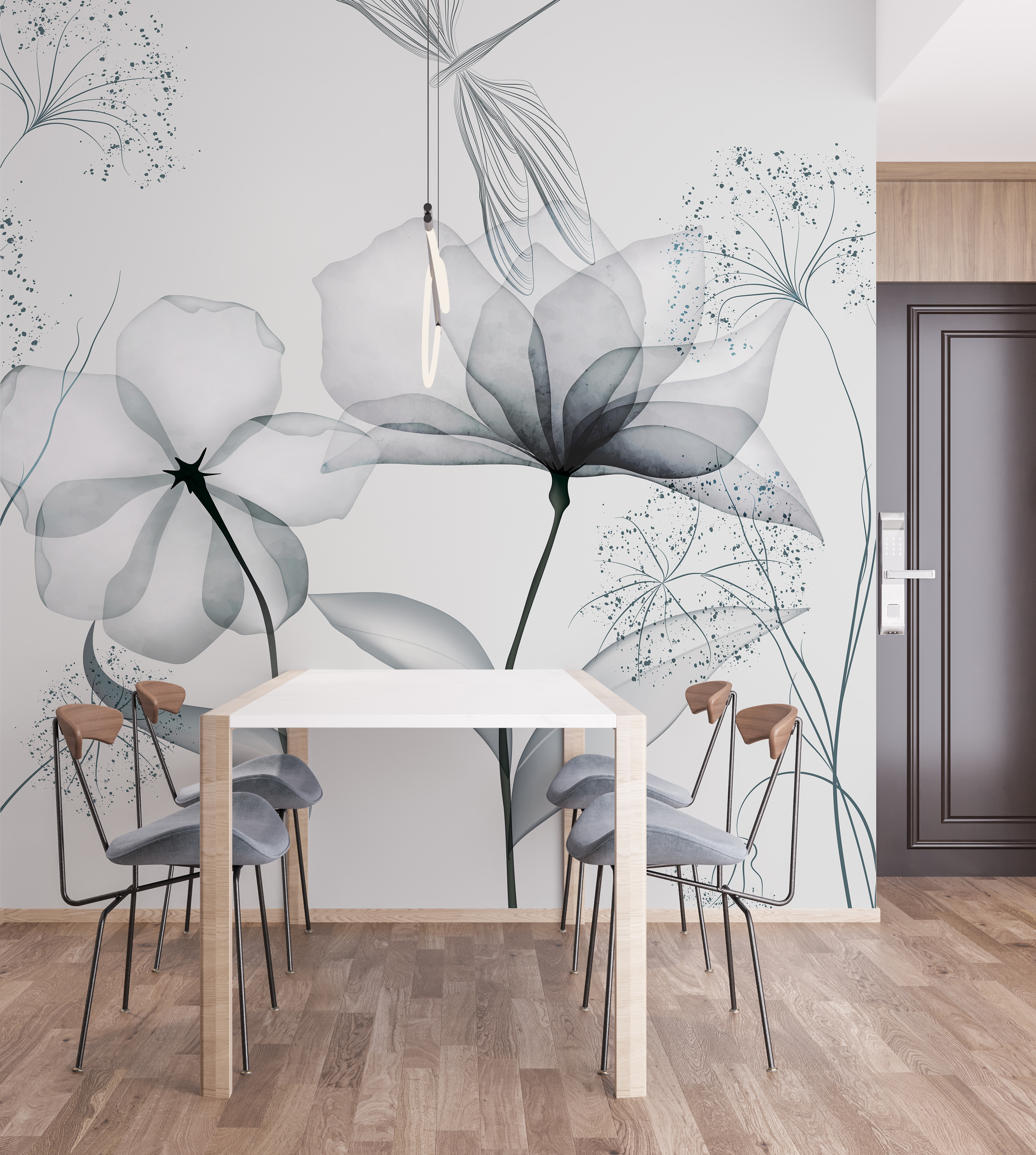 Immaginate di entrare in una stanza e di essere accolti dalla semplice bellezza di fiori delicati e monocromatici. Questo murale non è solo arredamento, è uno stato d’animo. Ogni fiore, delicatamente pennellato in una morbida scala di grigi, parla di mattine tranquille e pomeriggi sereni. Perfetto per chi ama un tocco minimalista ma desidera un pizzico di natura. È come avere un giardino acquerellato in salotto, senza doverlo innaffiare! Sia che stiate sognando ad occhi aperti sulla vostra poltrona preferita o che stiate ospitando gli amici, questo murale rende tutto più sereno. Una piccola fetta di tranquillità sulla vostra parete. A chi non piacerebbe?
