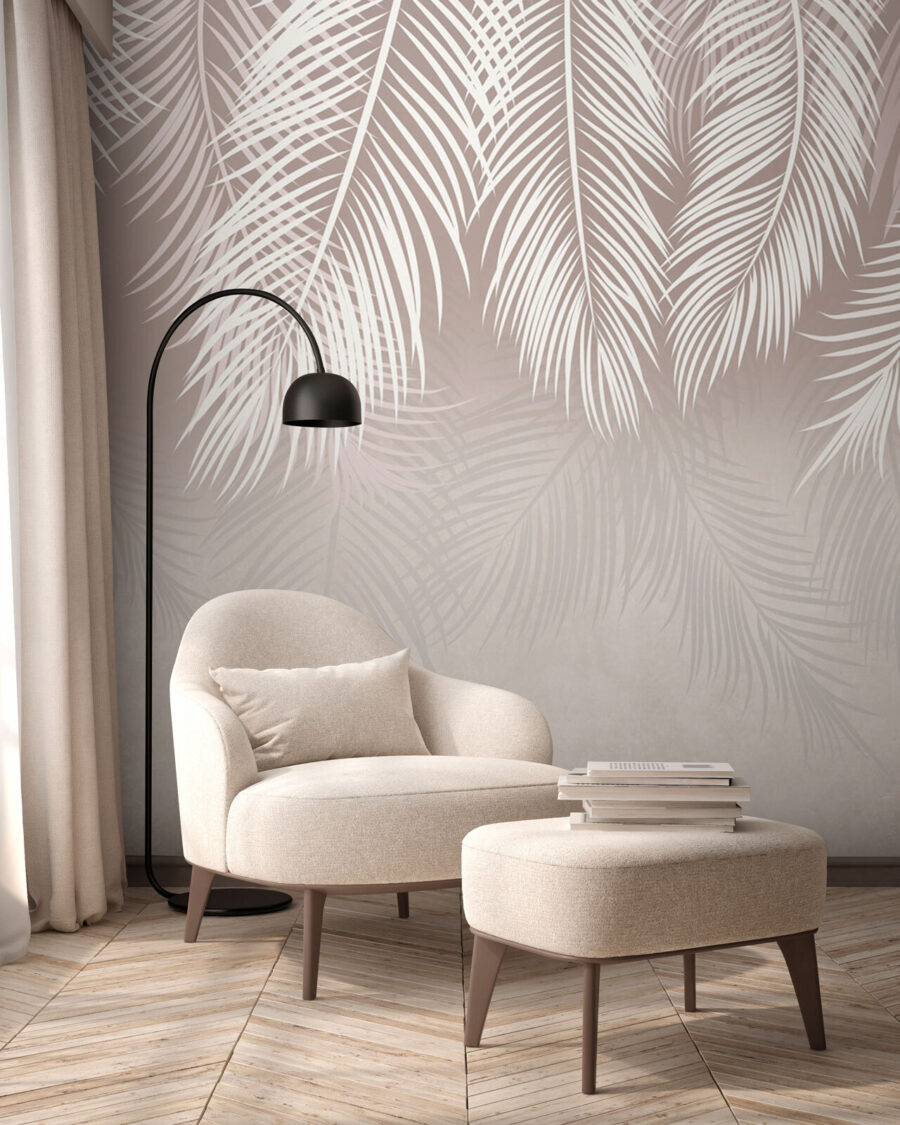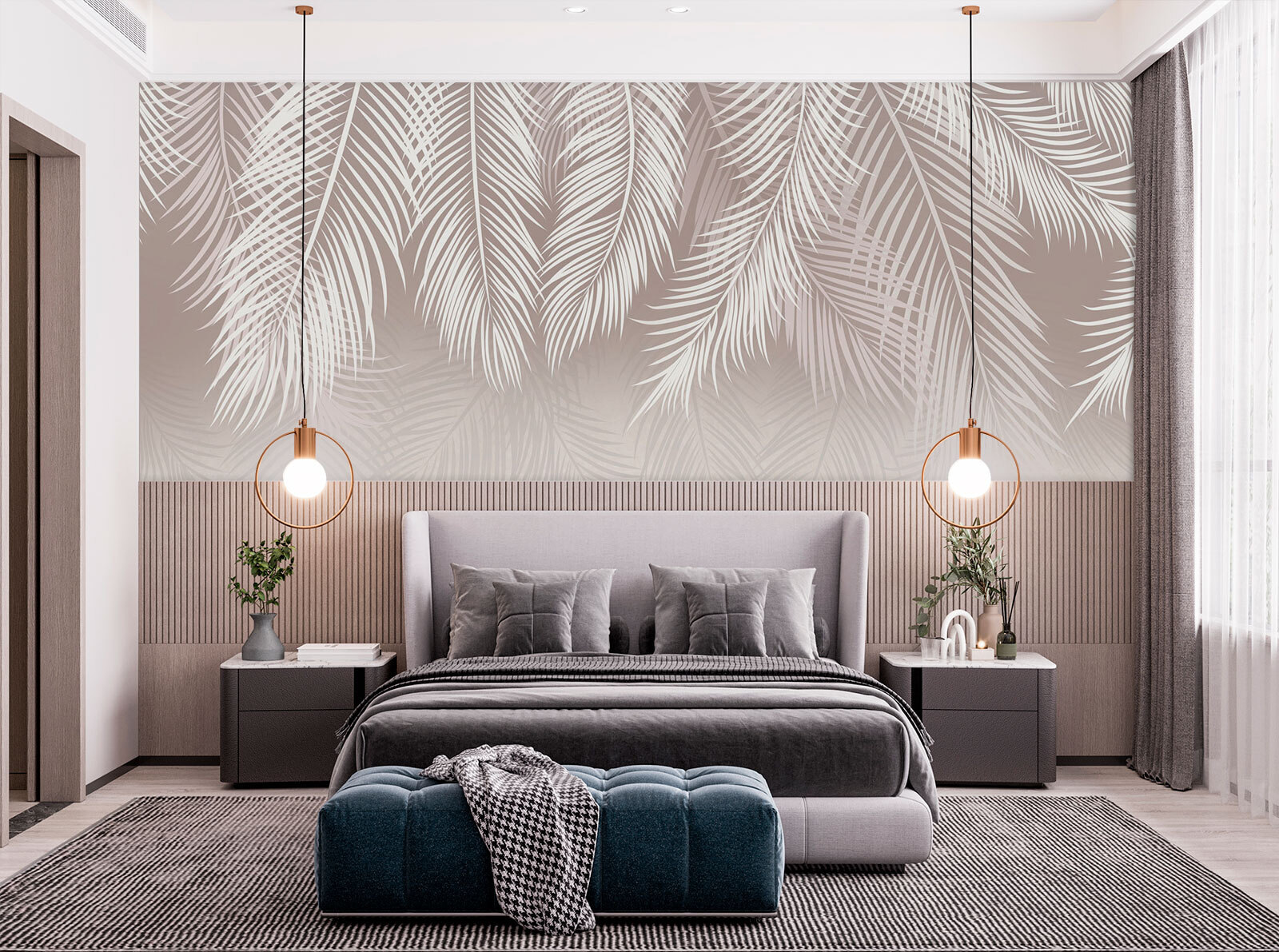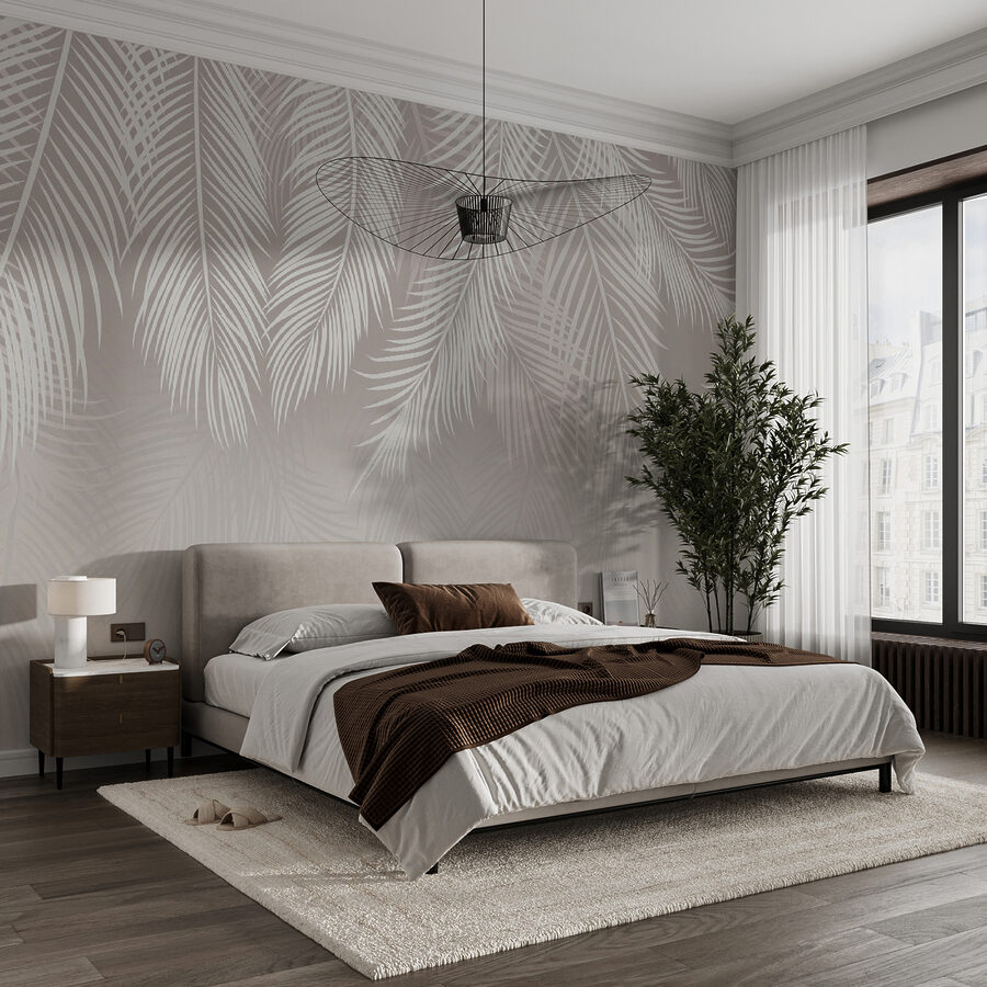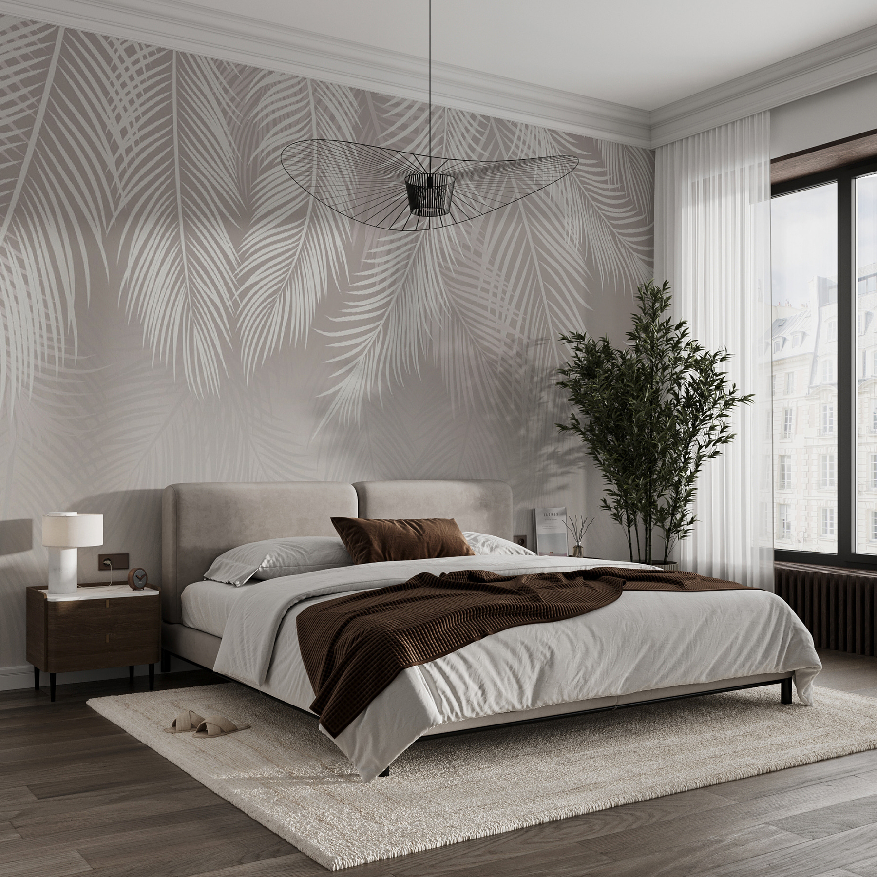 Trasformate il vostro spazio con questo elegante murale con motivo a foglie di palma, una miscela perfetta di tranquillità e stile. Immaginate di entrare in una stanza che sussurra relax ad ogni sguardo. Le foglie morbide e sottili creano uno sfondo rilassante, come se si entrasse in un sereno paradiso tropicale senza uscire di casa. È come avere una mini-vacanza direttamente sulla parete di casa. Gli amici potrebbero chiedervi se avete installato una finestra su un giardino lussureggiante. Perfetto per un accogliente angolo lettura o un vivace salotto, questo murale porta una ventata di aria fresca e un tocco di natura all’interno della casa.