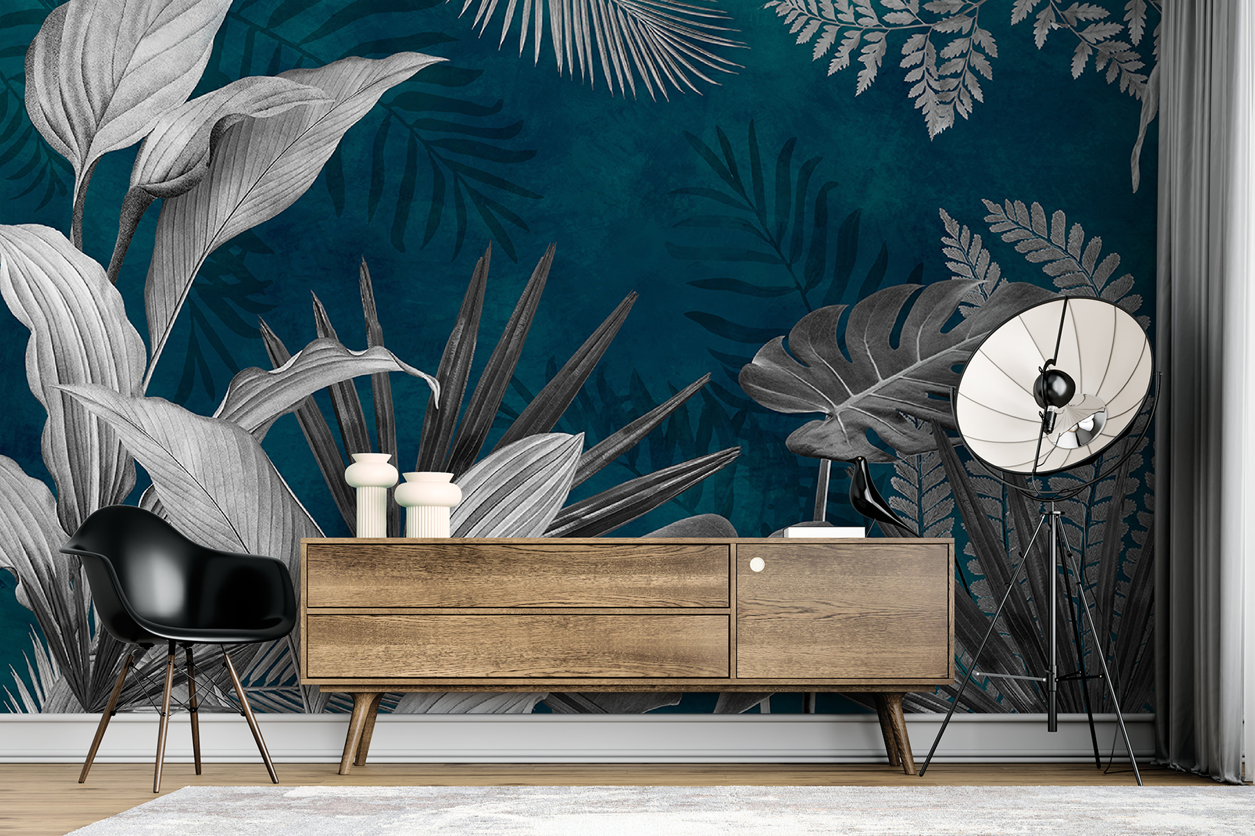 Perfetto per chi ama la natura ma non ha necessariamente il pollice verde. Lo sfondo verde acqua aggiunge un tocco sofisticato, facendo risaltare le foglie. Non è solo un murale, è un’esperienza. Ideale per meditare, rilassarsi o anche solo per rilassarsi un po’. Inoltre, gli ospiti penseranno che è ultra cool. Chi non vorrebbe un piccolo rifugio tropicale a casa propria?