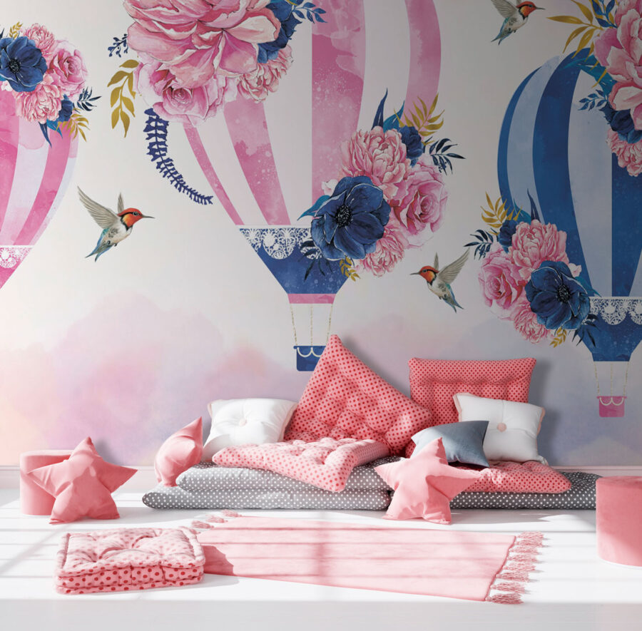 Trasforma il tuo spazio con questo murale da sogno raffigurante un gruppo di mongolfiere adornate con bellissimi fiori. Immagina di entrare in una stanza che sembra fluttuare su una leggera brezza, dove ogni mongolfiera porta un tocco di colore e fantasia. Le tonalità tenui e i delicati fiori creano un’atmosfera serena, perfetta per un accogliente angolo lettura o una vivace cameretta per bambini. E poi, quei piccoli colibrì? Adorabili! È come se la natura e l’arte avessero avuto una piacevole conversazione e tu potessi goderti il capolavoro. Chi non si sentirebbe un po’ più leggero solo guardandolo? Perfetto per chi crede che un pizzico di magia possa vivere in ogni angolo della propria casa!
