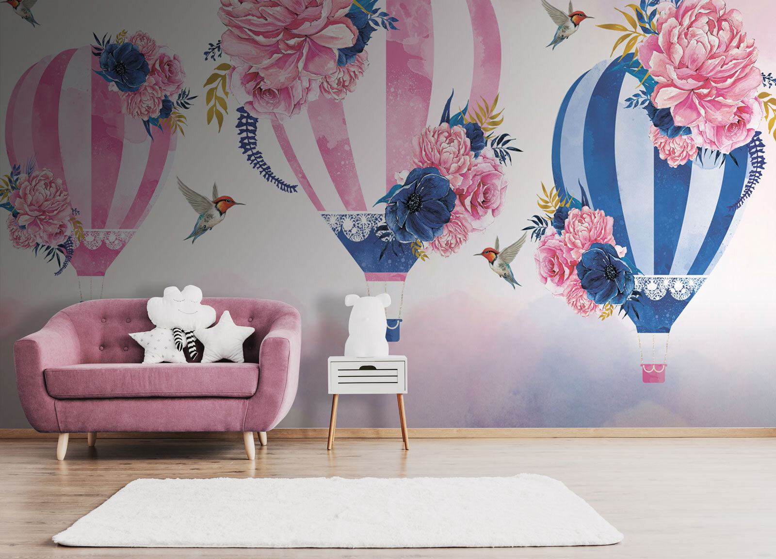 Trasforma il tuo spazio con questo murale da sogno raffigurante un gruppo di mongolfiere adornate con bellissimi fiori. Immagina di entrare in una stanza che sembra fluttuare su una leggera brezza, dove ogni mongolfiera porta un tocco di colore e fantasia. Le tonalità tenui e i delicati fiori creano un’atmosfera serena, perfetta per un accogliente angolo lettura o una vivace cameretta per bambini. E poi, quei piccoli colibrì? Adorabili! È come se la natura e l’arte avessero avuto una piacevole conversazione e tu potessi goderti il capolavoro. Chi non si sentirebbe un po’ più leggero solo guardandolo? Perfetto per chi crede che un pizzico di magia possa vivere in ogni angolo della propria casa!