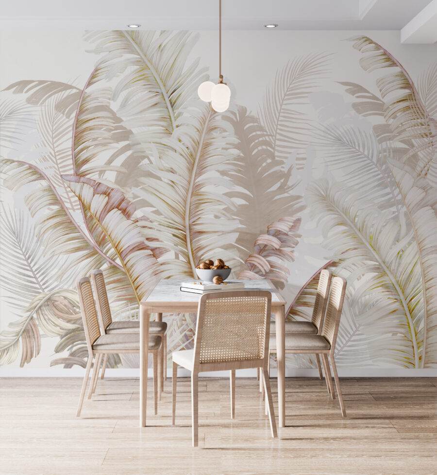 Immaginate di essere seduti nel vostro posto preferito a casa, circondati dalla serena bellezza della natura senza nemmeno uscire. Il murale “Tropical Leaves in Gentle Hues” vi ci porta. I toni morbidi e tenui delle foglie tropicali creano un’oasi di calma, perfetta per qualsiasi stanza che necessiti di un tocco di tranquillità. Non è una semplice carta da parati, è come un dolce sussurro della foresta. Non riuscite a sentire la brezza che fruscia tra le foglie? Installate questo murale di design e trasformate il vostro spazio in un rifugio di pace, la vostra piccola fetta di paradiso.