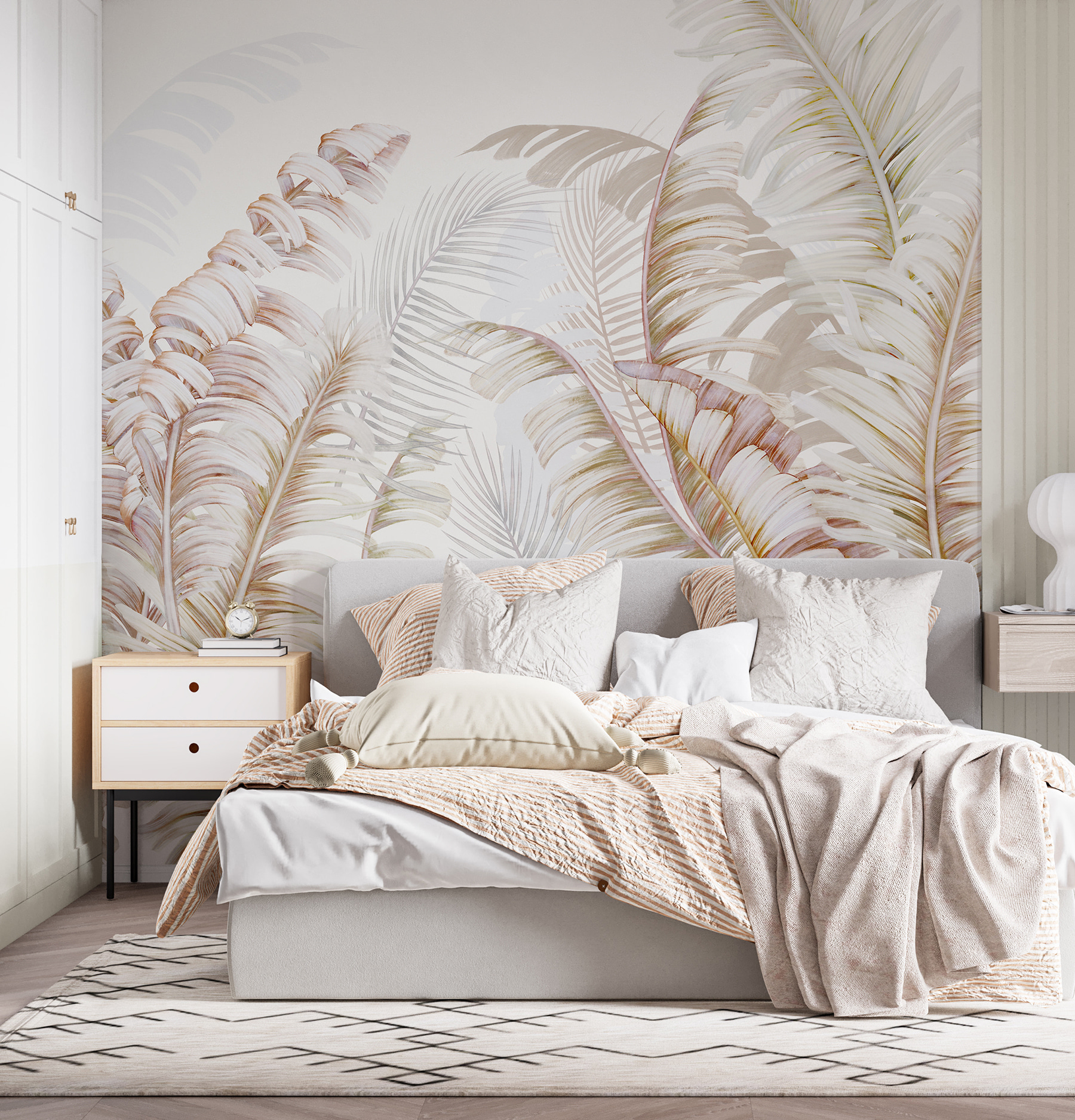 Immaginate di essere seduti nel vostro posto preferito a casa, circondati dalla serena bellezza della natura senza nemmeno uscire. Il murale “Tropical Leaves in Gentle Hues” vi ci porta. I toni morbidi e tenui delle foglie tropicali creano un’oasi di calma, perfetta per qualsiasi stanza che necessiti di un tocco di tranquillità. Non è una semplice carta da parati, è come un dolce sussurro della foresta. Non riuscite a sentire la brezza che fruscia tra le foglie? Installate questo murale di design e trasformate il vostro spazio in un rifugio di pace, la vostra piccola fetta di paradiso.