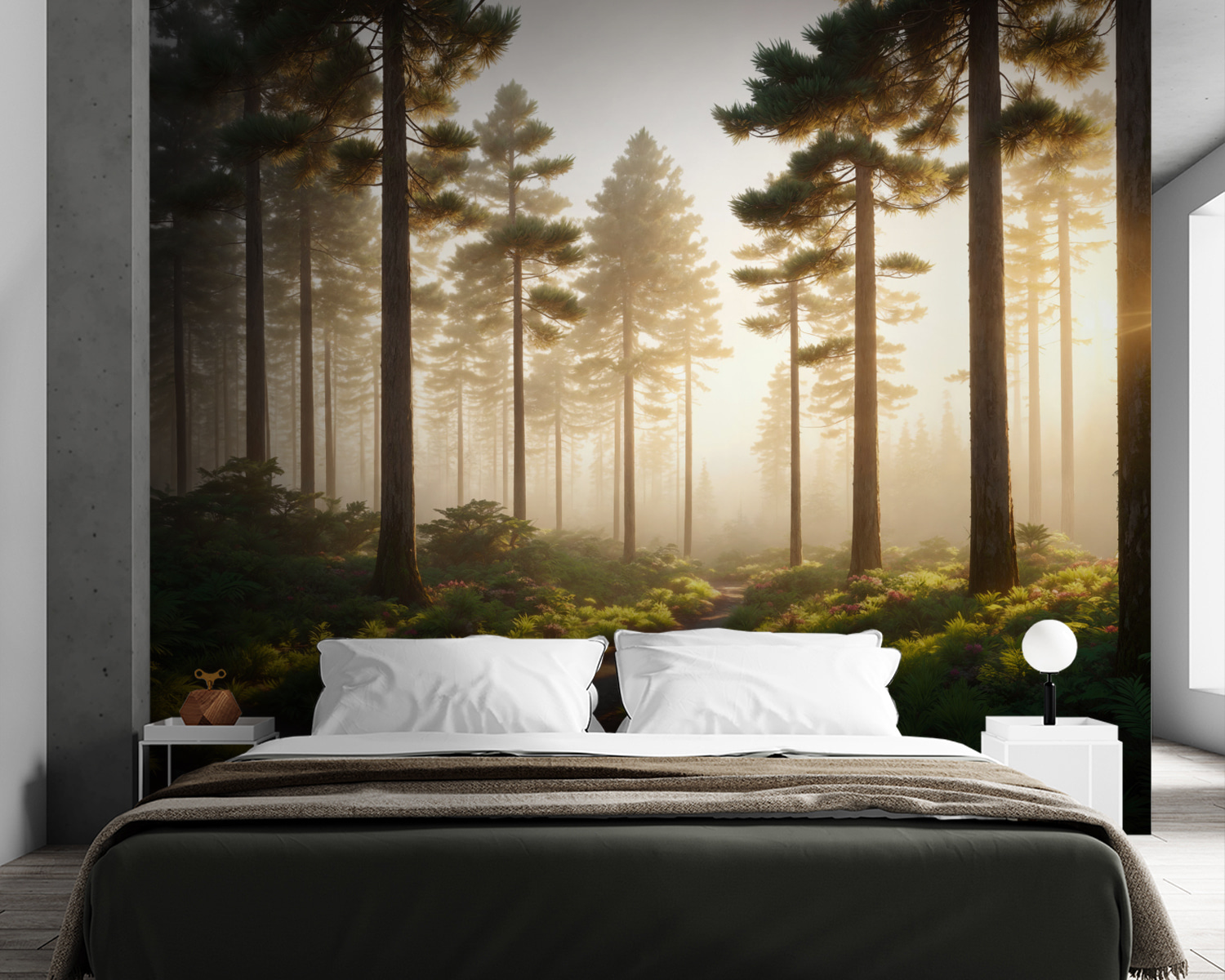 Trasformate qualsiasi spazio con le calme vibrazioni di questo murale che raffigura un sereno sentiero nella foresta al sorgere del sole. Immaginate di svegliarvi ogni mattina con questa scena pacifica, dove la luce delicata filtra attraverso gli alti alberi, creando un’atmosfera accogliente. È come avere la natura in casa, senza gli insetti e le scarpe infangate. Immaginatevi di sorseggiare un caffè, persi nei vostri pensieri, mentre osservate questo panorama tranquillo. I verdi vivaci e i toni caldi potrebbero farvi sognare ad occhi aperti di vagare per i boschi. Perfetto per un salotto o un accogliente angolo lettura, questo murale porta l’esterno all’interno, invitando al relax e a un tocco di magia.