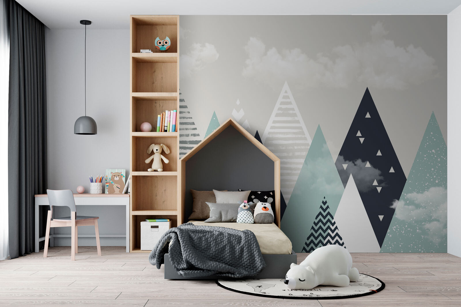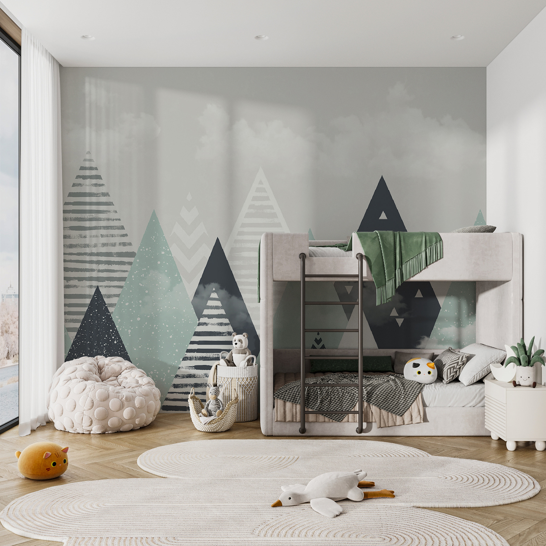 È un murale che dice: “Ehi, sogniamo ad occhi aperti!”. Che sia per accoccolarsi durante una storia della buonanotte o per giocare con i loro giocattoli preferiti, questo murale crea un’atmosfera rilassante e creativa. Si possono quasi sentire i sussurri delle storie e delle avventure che si svolgeranno nel vostro accogliente angolino con un rivestimento a scacchiera. Trasformate lo spazio del vostro bambino in un paese delle meraviglie dove la sua immaginazione possa volare!