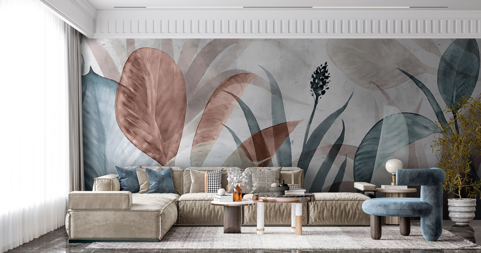 Trasformate qualsiasi spazio in un rifugio sereno con questo delizioso murale di foglie astratte in morbide tonalità della terra. Immaginate di entrare in un angolo accogliente, dove i colori calmi si posano, facendo sentire ogni momento come una dolce brezza. I motivi stravaganti sembrano quasi danzare sulla parete, sussurrando storie di tranquilla bellezza della natura. Perfetto per un salotto o per un tranquillo angolo lettura, invita al relax: basti pensare a pomeriggi accoglienti con un buon libro e una tazza di tè. È un pezzo che stimola la gioia e un po’ di sogni a occhi aperti, il tutto mantenendo un’eleganza senza sforzo. Chi non vorrebbe perdersi in una vista così incantevole?