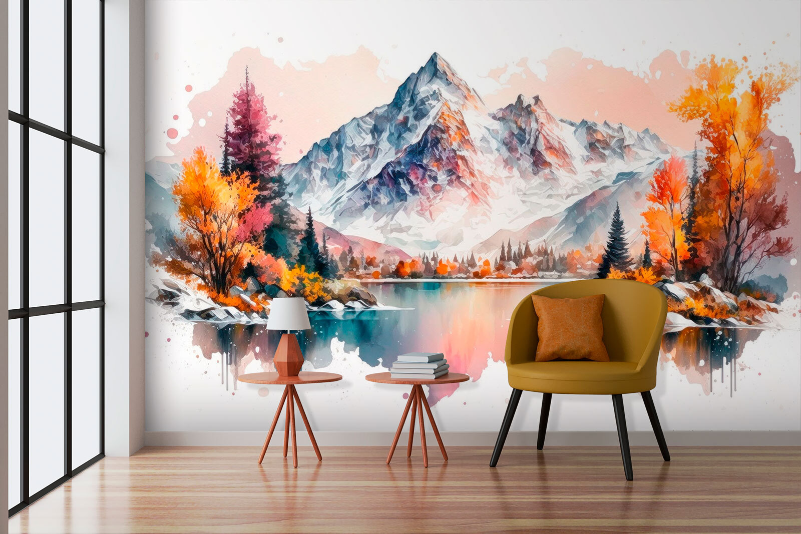 Immaginate di entrare in una stanza e di sentirvi immediatamente trasportati in un bizzarro paese delle meraviglie: questo murale fa proprio questo. Con l’incantevole dipinto di un albero che indossa vibranti foglie arancioni, è come se l’autunno si fosse aggiornato e trasferito in casa! Perfetto per la stanza di un bambino o per qualsiasi altro luogo in cui si voglia aggiungere un po’ di magico paesaggio montano, quest’opera d’arte potrebbe incantare uno yeti. L’effetto acquerello aggiunge un’atmosfera sognante, facendola sembrare quasi un dolce abbraccio della natura stessa. Che stiate sorseggiando un caffè o facendo un tè segreto con i vostri peluche, questo murale è uno sfondo colorato che sussurra serenità e avventura allo stesso tempo.