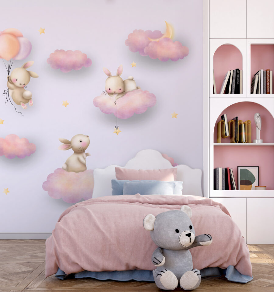 Trasforma qualsiasi spazio in un rifugio da sogno con questo delizioso murale che raffigura un gruppo di coniglietti che fluttuano sulle nuvole. Immagina questi morbidi animaletti sospesi in un cielo dai colori pastello, ognuno dei quali aggiunge un tocco di allegria. Perfetto per la cameretta dei bambini, questo murale promette di stimolare la gioia e l’immaginazione. Immagina le favole della buonanotte che prendono vita su questo sfondo, o magari anche i sogni ad occhi aperti sotto i colori tenui. Che si tratti di un angolo accogliente o di una stanza dei giochi, questo murale dona quel tocco magico e rassicurante che fa sentire tutti un po’ più leggeri. Chi non sorriderebbe davanti a un coniglietto che tiene in mano dei palloncini? È come un dolce promemoria che ci invita a continuare a sognare, anche quando la vita diventa frenetica.