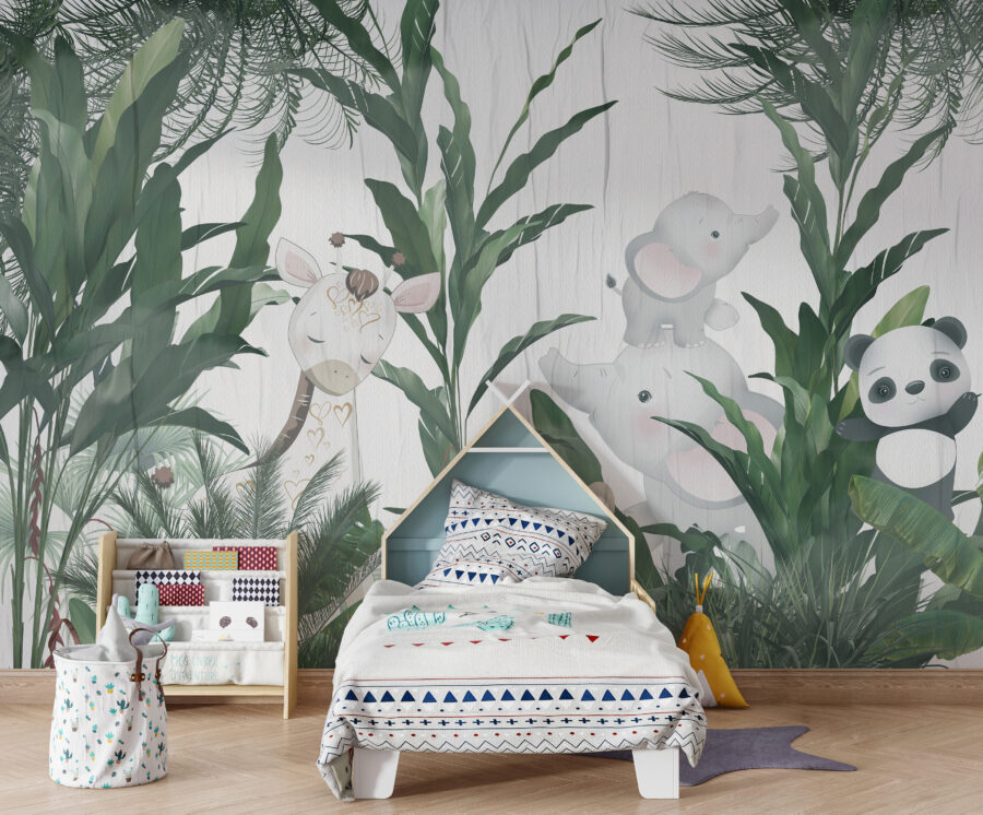 Installare questo murale è come invitare una foresta stravagante a casa vostra. L’atmosfera della giungla vi attira, affascinando grandi e piccini con il suo fascino giocoso. Immaginate le storie della buonanotte con questo incantevole sfondo: una spedizione nella giungla senza uscire dalla stanza! È un mix amichevole di vibranti tonalità di verde e di simpatici e pacifici animali che faranno sentire ogni spazio accogliente e avventuroso. I bambini potranno sognare storie infinite con i loro nuovi amici della foresta. È semplicemente magico.