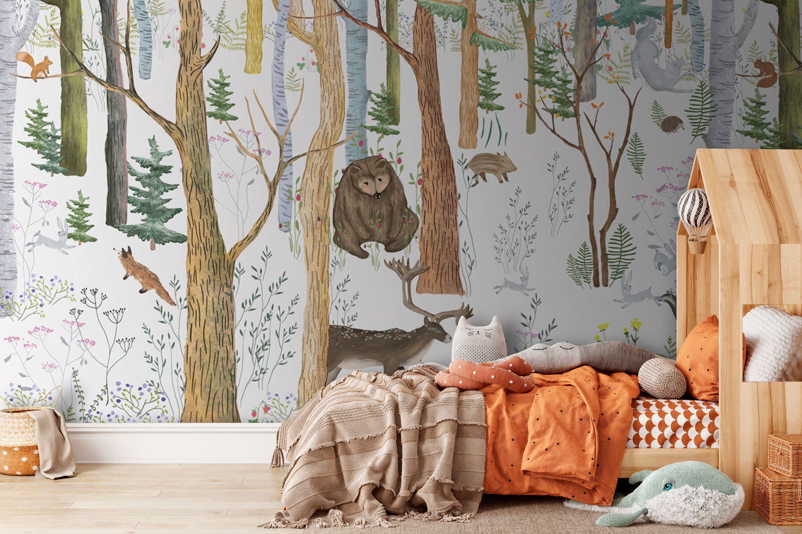 Questo murale si adatta perfettamente alle camerette, alle stanze da gioco dei bambini o a qualsiasi altro luogo in cui si voglia aggiungere un pizzico di meraviglia e di sorriso. È abbastanza affascinante per i neonati, ma anche per i bambini in crescita. Ogni volta che si entra, è come entrare in una favola. Immaginate le storie della buonanotte che assumono una nuova profondità, con il vostro bambino che vi indica un cervo o uno scoiattolo dispettoso che ha già “incontrato”. Un muro che cresce con loro? Non ha prezzo!