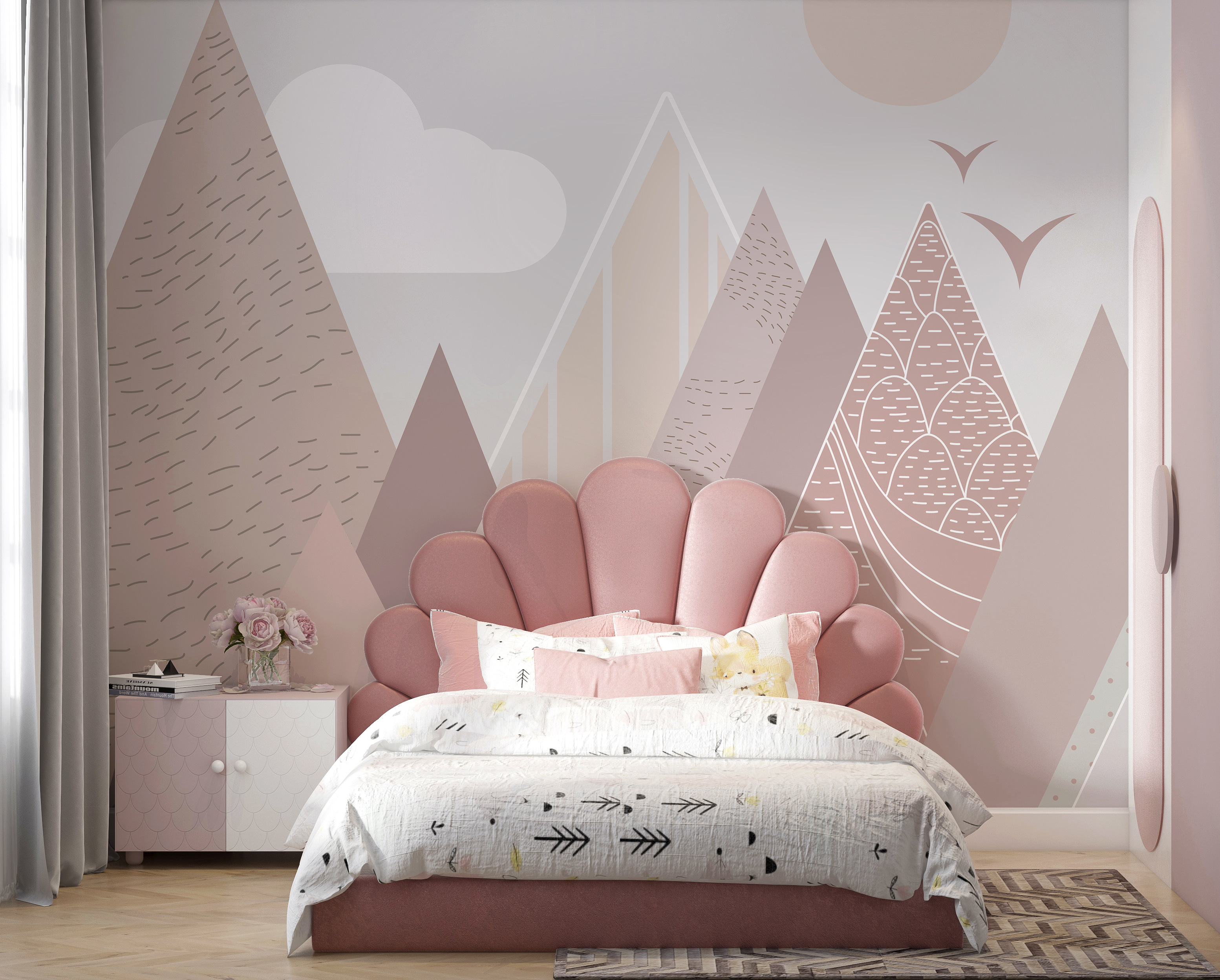 Immaginate di entrare in una stanza e di provare un’immediata sensazione di calma e di estro, un po’ come un accogliente sogno a occhi aperti. Il murale “Geometric Mountains with Birds Flying” fa proprio questo. Con le sue montagne giocose e pastello e i simpatici uccelli che volano, dona un’atmosfera dolce e serena alla stanza di ogni bambino. Ideale per le camerette e i nidi d’infanzia, dona un tocco di magia senza essere eccessivo.