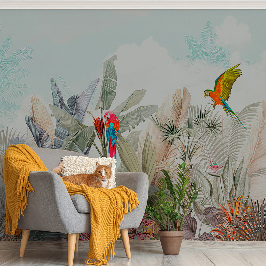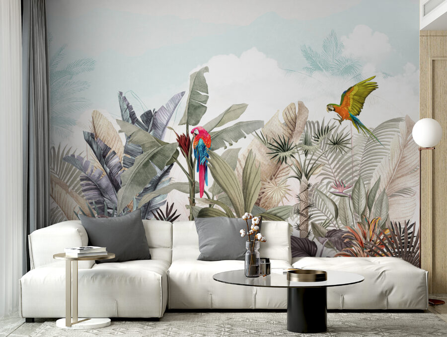 Ecco la vostra nuova ossessione da parete: il murale “Pappagallo colorato che vola nell’aria”. È come trovare il sogno di un birdwatcher atterrato proprio nel vostro salotto! Immaginate due vivaci pappagalli che planano su verdi foglie e fiori tropicali. È come una mini-vacanza nella foresta pluviale, senza le zanzare, grazie al cielo!