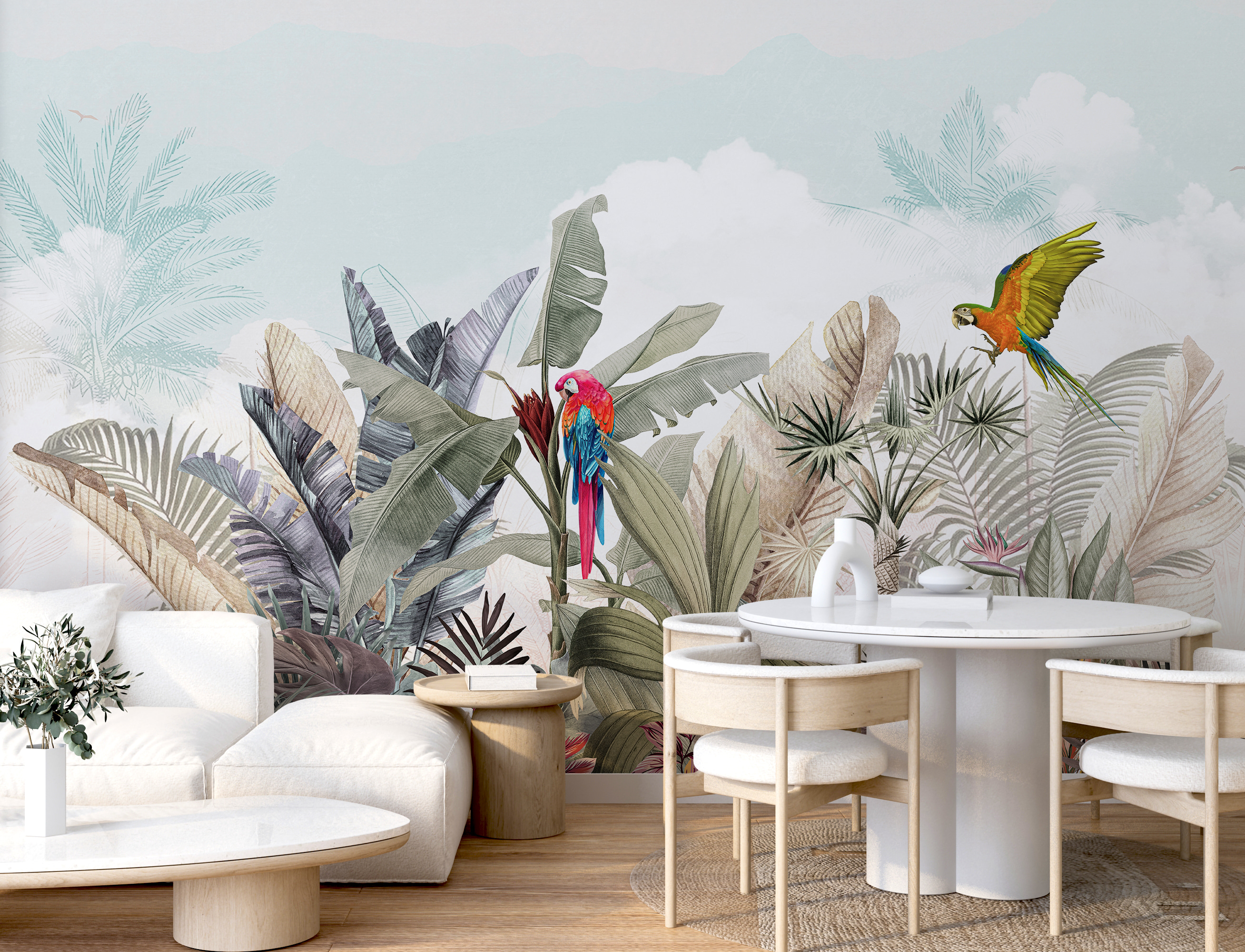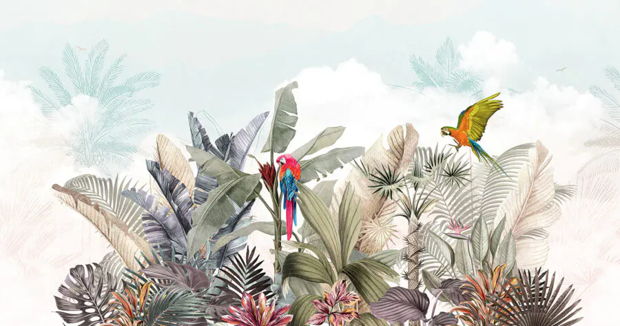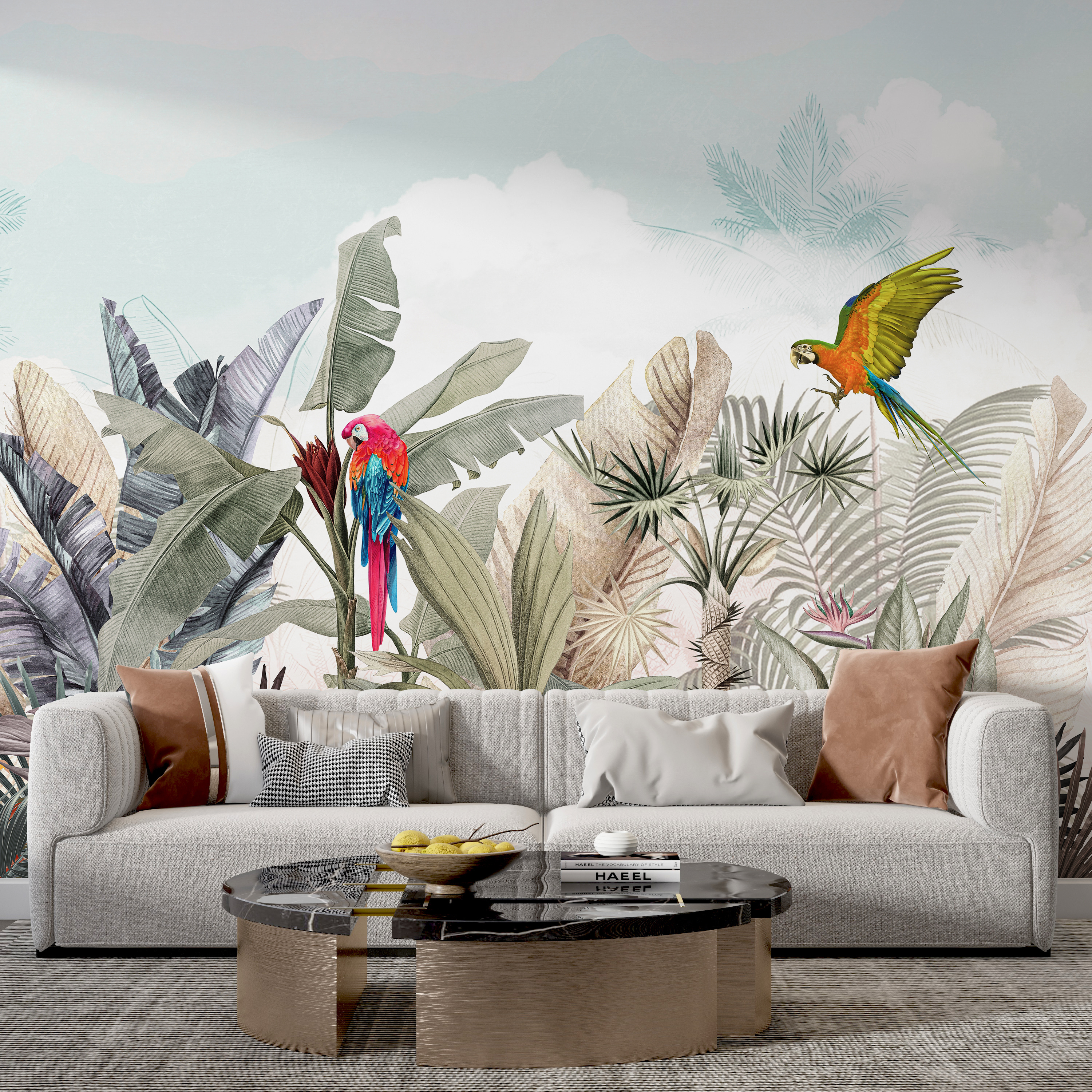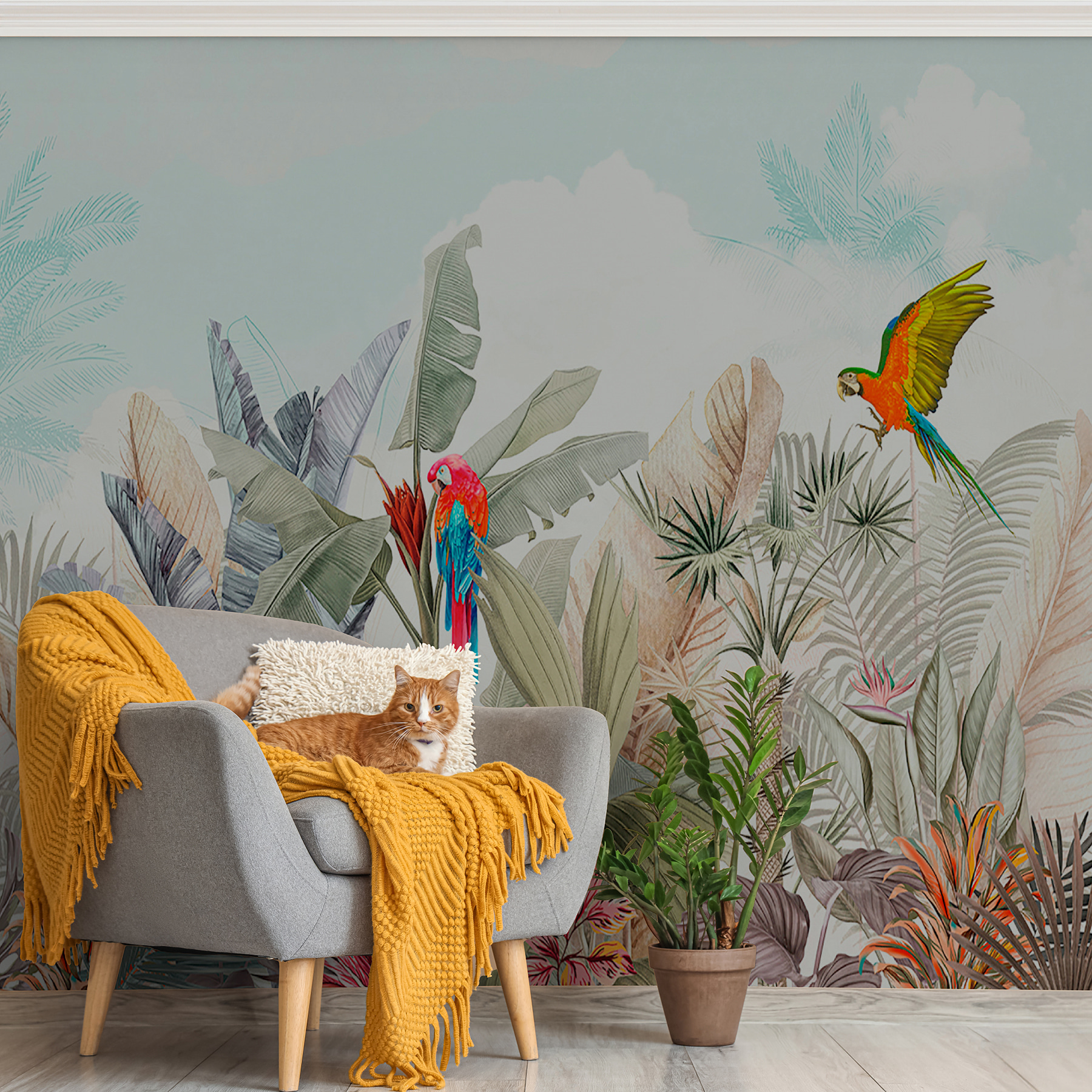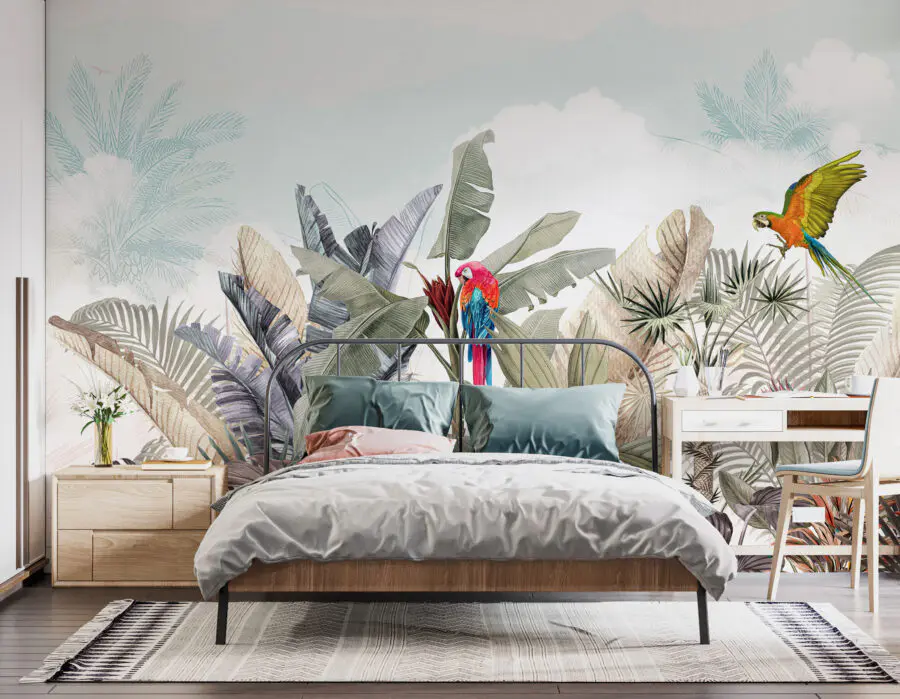 Ecco la vostra nuova ossessione da parete: il murale “Pappagallo colorato che vola nell’aria”. È come trovare il sogno di un birdwatcher atterrato proprio nel vostro salotto! Immaginate due vivaci pappagalli che planano su verdi foglie e fiori tropicali. È come una mini-vacanza nella foresta pluviale, senza le zanzare, grazie al cielo!