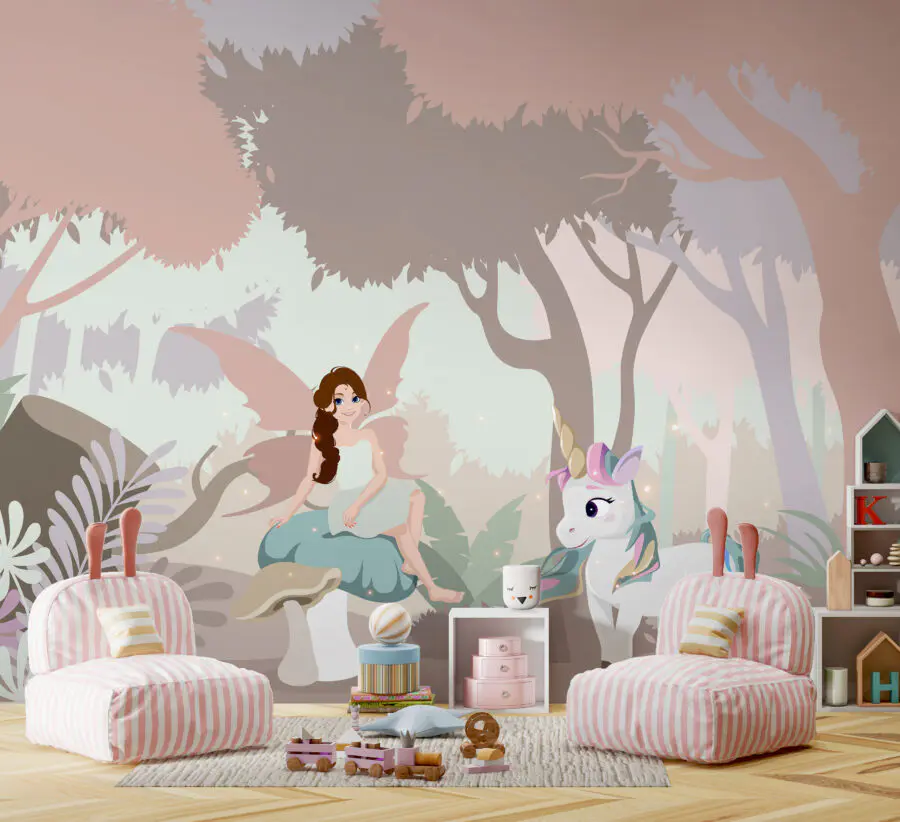 Questo murale non è un sogno ad occhi aperti? Immaginate un bellissimo unicorno che se ne va in giro per una foresta magica con una fata stravagante… è come se fosse uscito da un libro di fiabe! Perfetto per stimolare l’immaginazione del vostro piccolo, questo murale porta un tocco di incanto e avventura nella sua stanza. Troverete simpatiche tonalità pastello e dettagli affascinanti che rendono l’intera scena così viva! Pensate alla gioia sul volto del vostro bambino che si sveglia ogni giorno in questo mondo incantato. È come entrare in una favola ogni mattina. Chissà, anche le storie della buonanotte potrebbero diventare un po’ più magiche con questo sfondo giocoso. Un’ottima scelta per rendere ogni stanza unica e deliziosa e così speciale!