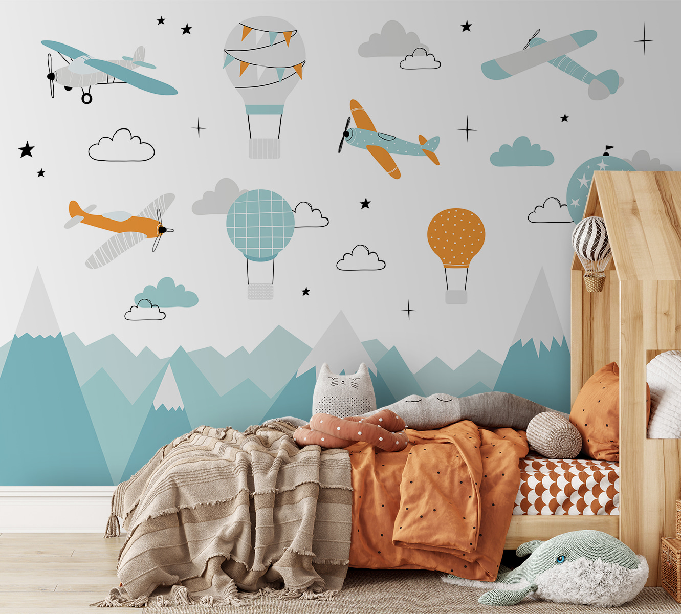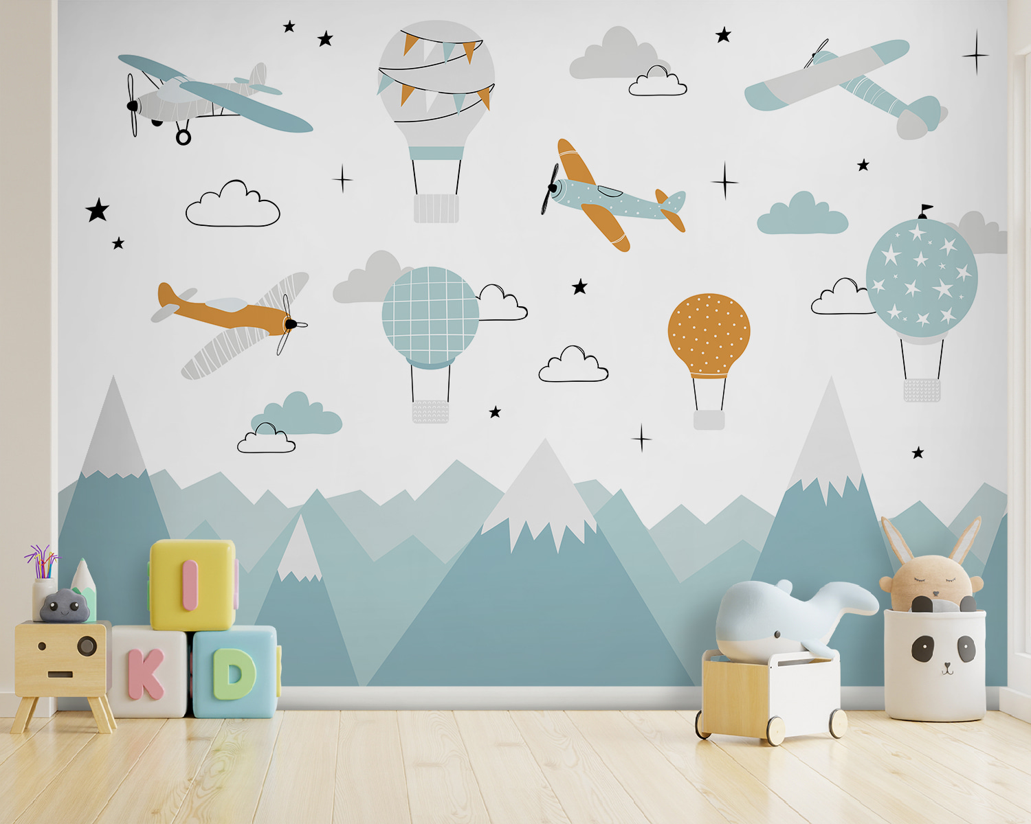 Transform your space into a whimsical sky with this delightful wall mural featuring planes soaring high and cheerful hot air balloons. Just imagine walking into a room where the vibrant colors and playful design spark joy and ignite imaginations. It’s like every day could be an adventure—who wouldn’t want to feel a little lighter? The charming illustrations add a touch of nostalgia, almost like a childhood daydream. Perfect for a nursery, playroom, or even your own cozy corner, it’s a joyful reminder to keep dreaming, no matter how old you get. So, hang it up, sit back, and let the adventures unfold!