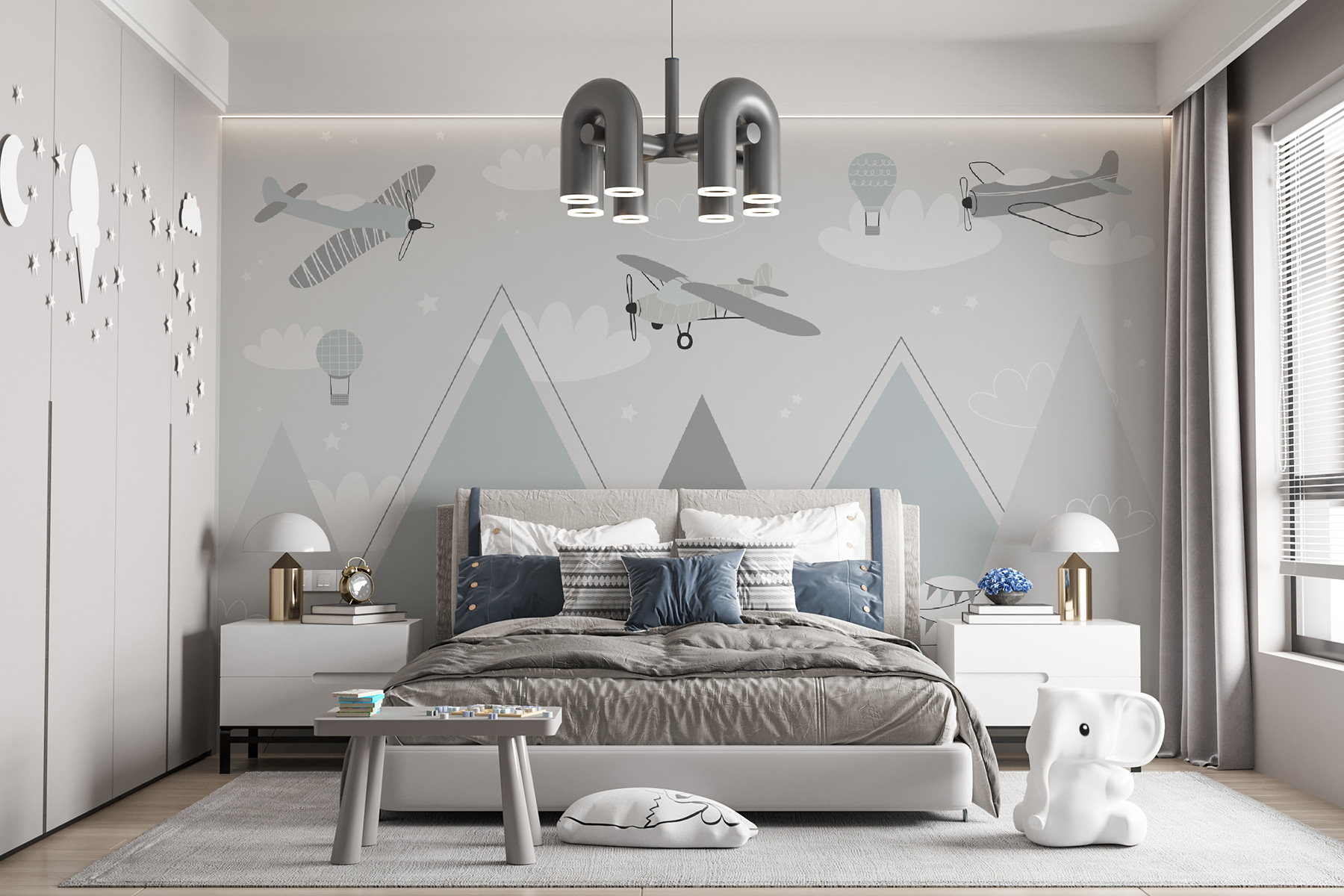 Immaginate la stanza del vostro bambino che si trasforma all’istante con questo delizioso murale, ricco di aeroplani d’epoca e stravaganti mongolfiere. È come entrare in un’avventura da sogno dai colori pastello, un cielo pieno di storie delicate che aspettano di essere raccontate. Ogni volta che il vostro piccolo lo guarderà, la sua immaginazione potrebbe decollare, librandosi in alto sopra quelle incantevoli montagne. Perfetto per figli, figlie, neonati o chiunque desideri un po’ di divertimento stravagante. Inoltre, chi può resistere a questi disegni adorabili? Non è solo una decorazione: è un viaggio nella stanza. Immaginate le storie della buonanotte che prendono il volo, circondate da questa scena serena e giocosa. Buon viaggio nel mondo dei sogni!