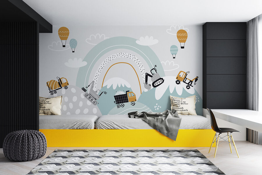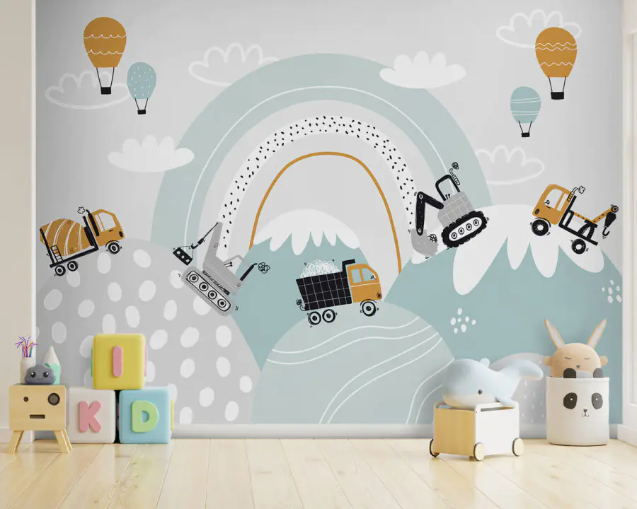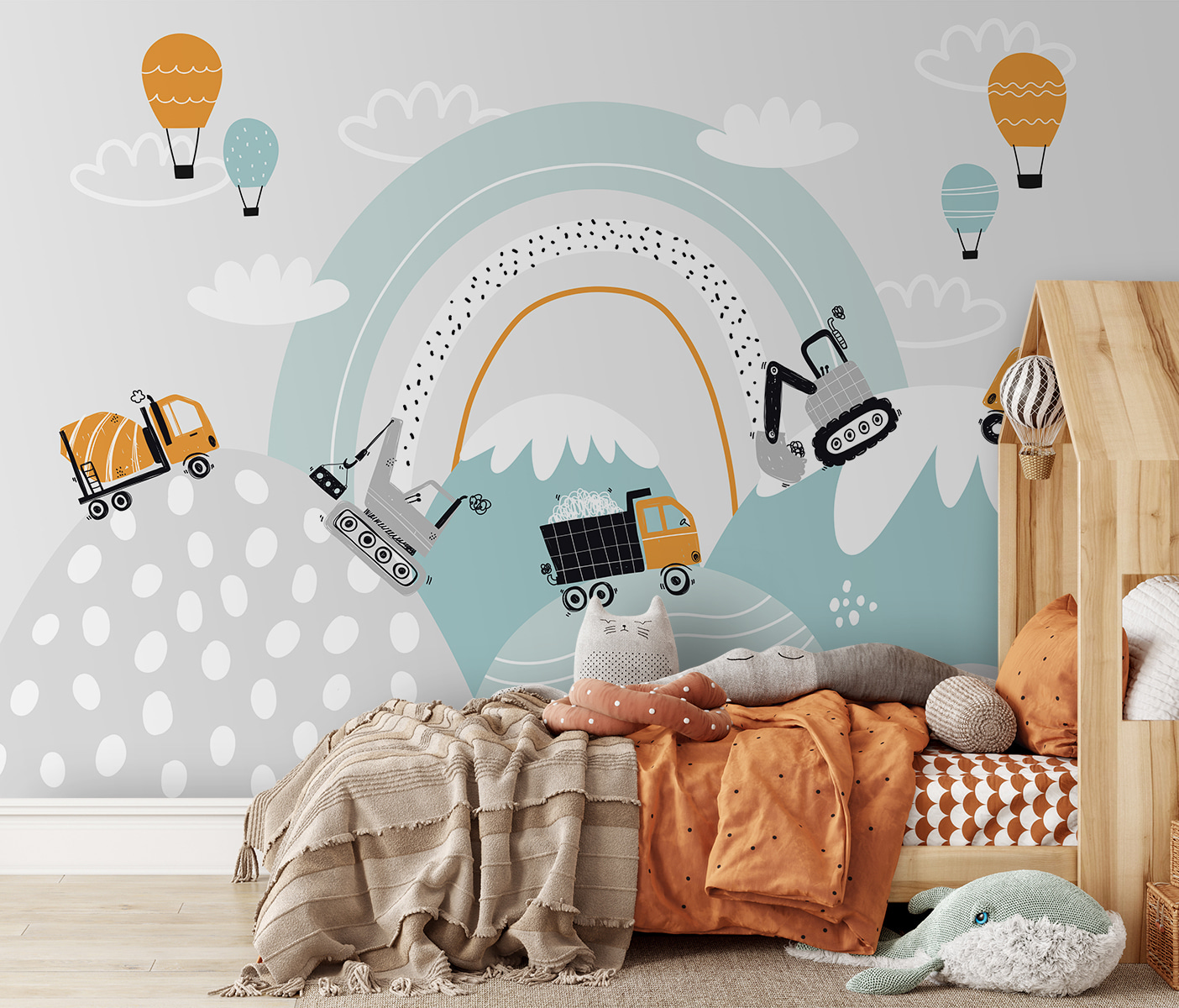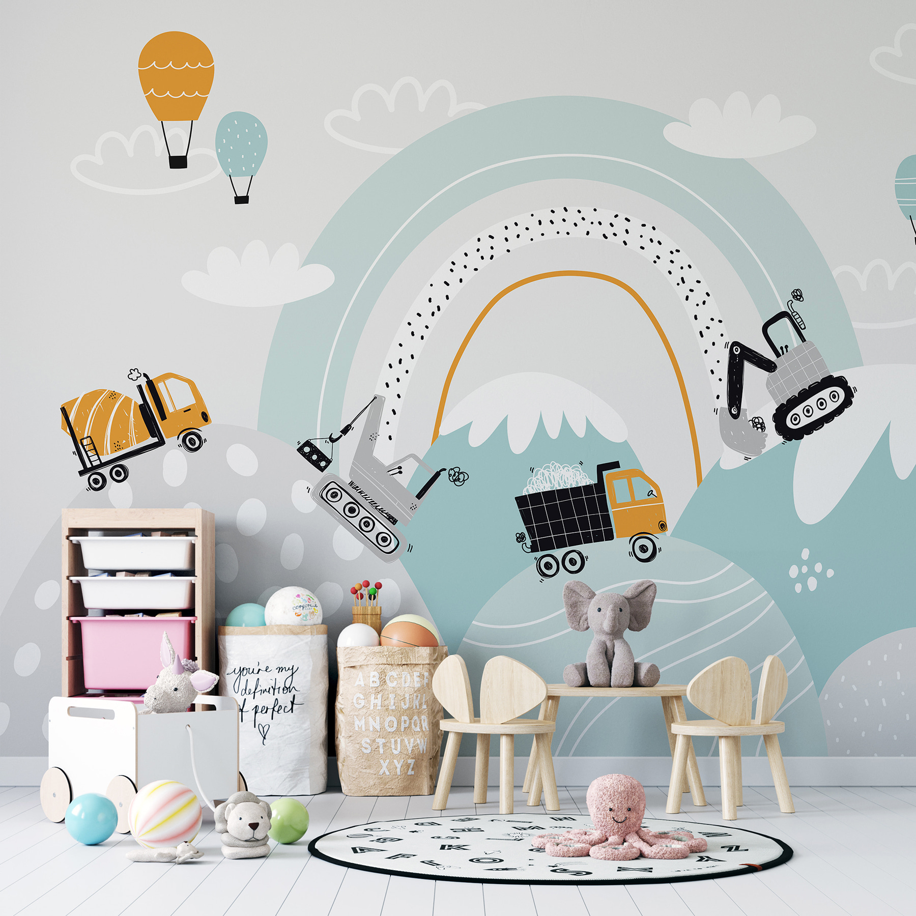 Non è delizioso questo murale? È come un piccolo mondo per il vostro piccolo, pieno di avventure edilizie. Immaginate: betoniere vivaci, nuvole allegre e simpatici escavatori che si muovono sulle colline. È un’atmosfera giocosa e stravagante che illumina qualsiasi stanza. È perfetto per i bambini e stimola la loro immaginazione. E quei colori pastello, davvero, potrebbero essere più perfetti? Immaginate le risate mentre sognano di costruire i loro paesaggi. Questo murale non è solo una decorazione, è un upgrade di felicità per la vostra casa!