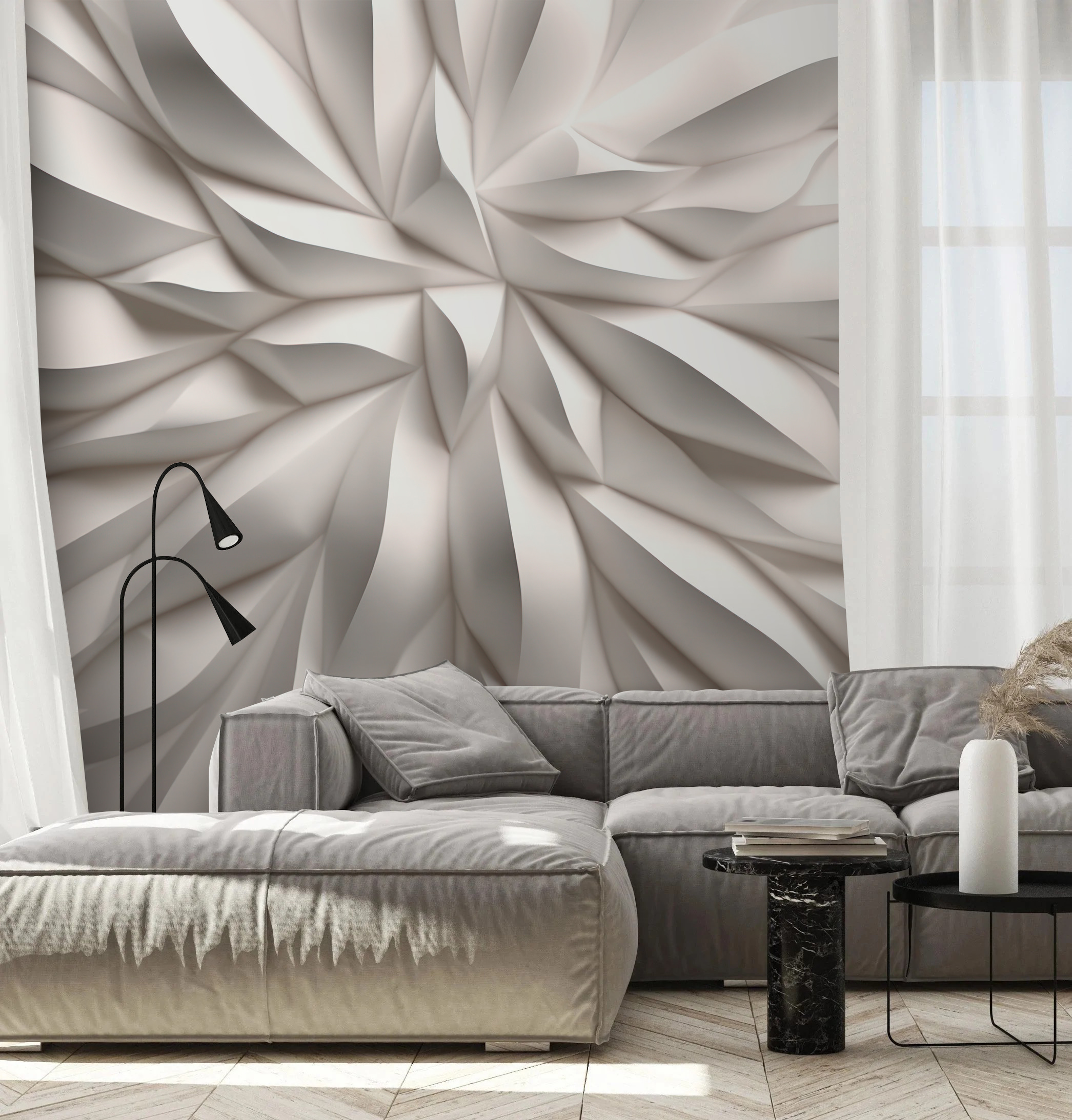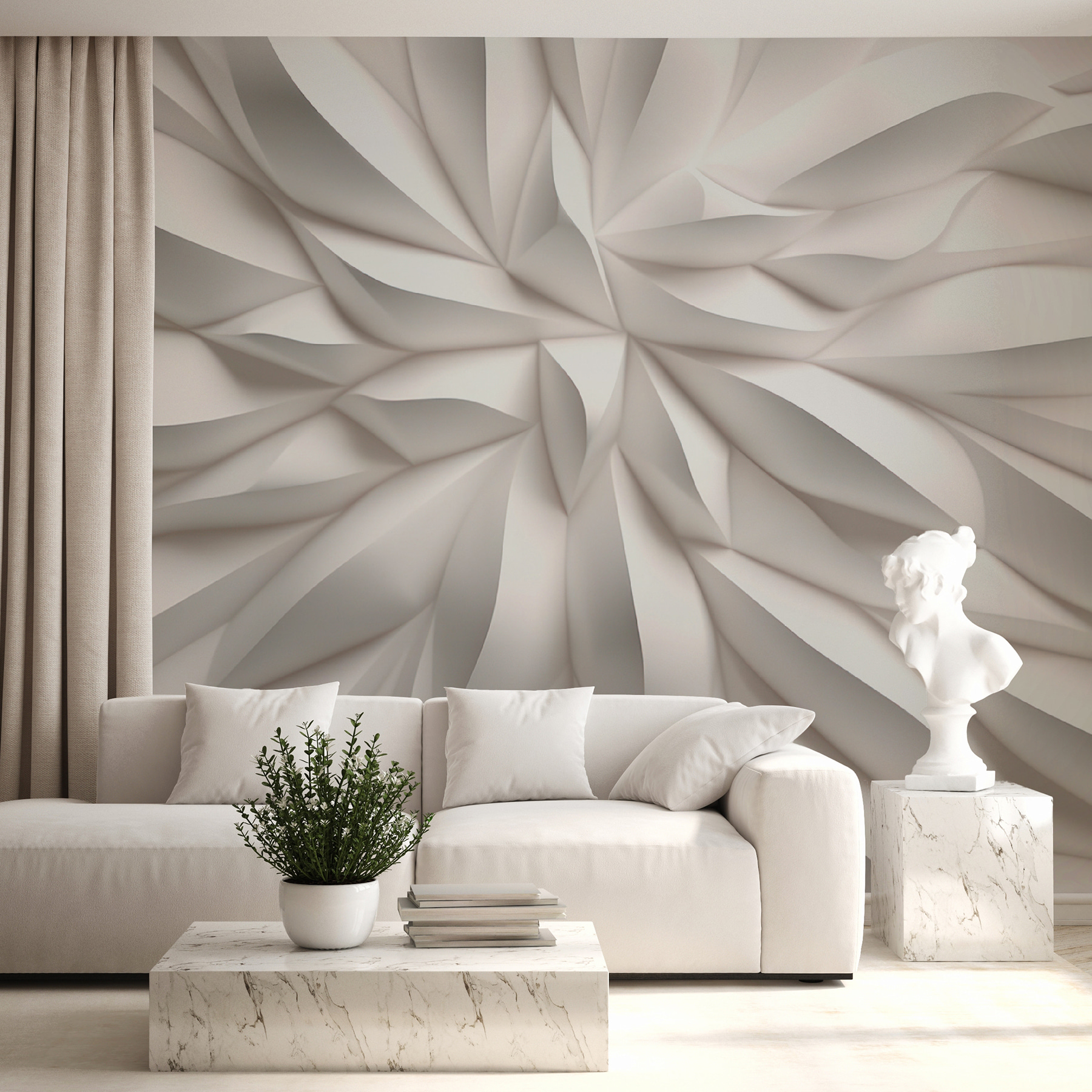 Le sottili pieghe bianche creano un effetto 3D dinamico, moderno e rilassante. Onestamente, sembra quasi un gigantesco fiore intricato. Perfetto per chi ama la semplicità sofisticata con un tocco di classe. Da appendere in salotto, in camera da letto o persino nella vostra postazione di lavoro: un aggiornamento immediato! Inoltre, fa parte della categoria Murales 3D con fiori, per cui si sa che ha un’atmosfera naturale e organica. Tuffatevi in un’avventura di design con questo murale unico: non vi viene voglia di toccarlo?