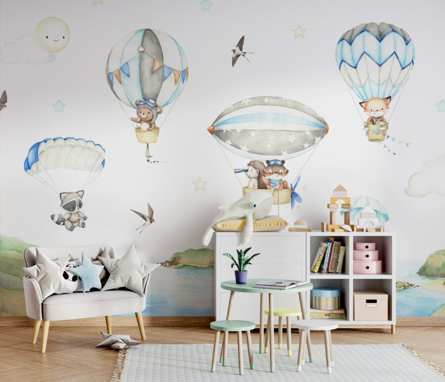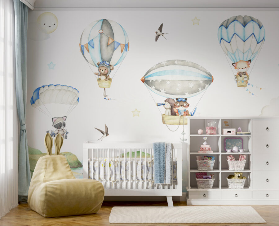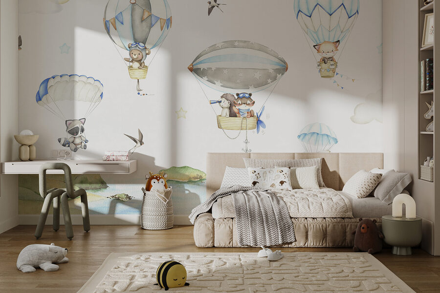Perché accontentarsi di pareti semplici quando si può portare il proprio piccolo in un’avventura con questo adorabile murale? “Orsetto in mongolfiera” è troppo carino per resistere. Immaginate un dolce orsacchiotto, vestito con occhiali da aviatore, che fluttua dolcemente nel cielo. Il fascino di questa scena da sogno è perfetto per suscitare storie infinite e calmare i sogni notturni. Perfetto per le camerette o per le stanze dei bambini, aggiunge un tocco giocoso che è sicuro e delicato per gli occhi. Davvero, a chi non piacerebbe svegliarsi ogni mattina con questa scena? Sembra di essere entrati in un libro illustrato dove ogni giorno è una nuova avventura nel cielo. I delicati colori pastello e i personaggi stravaganti fanno sì che non sia solo un richiamo per gli occhi, ma anche per l’umore. La stanza del vostro bambino si trasformerà immediatamente in un rifugio accogliente e magico, dove le mongolfiere e i sogni in alto prendono vita.
