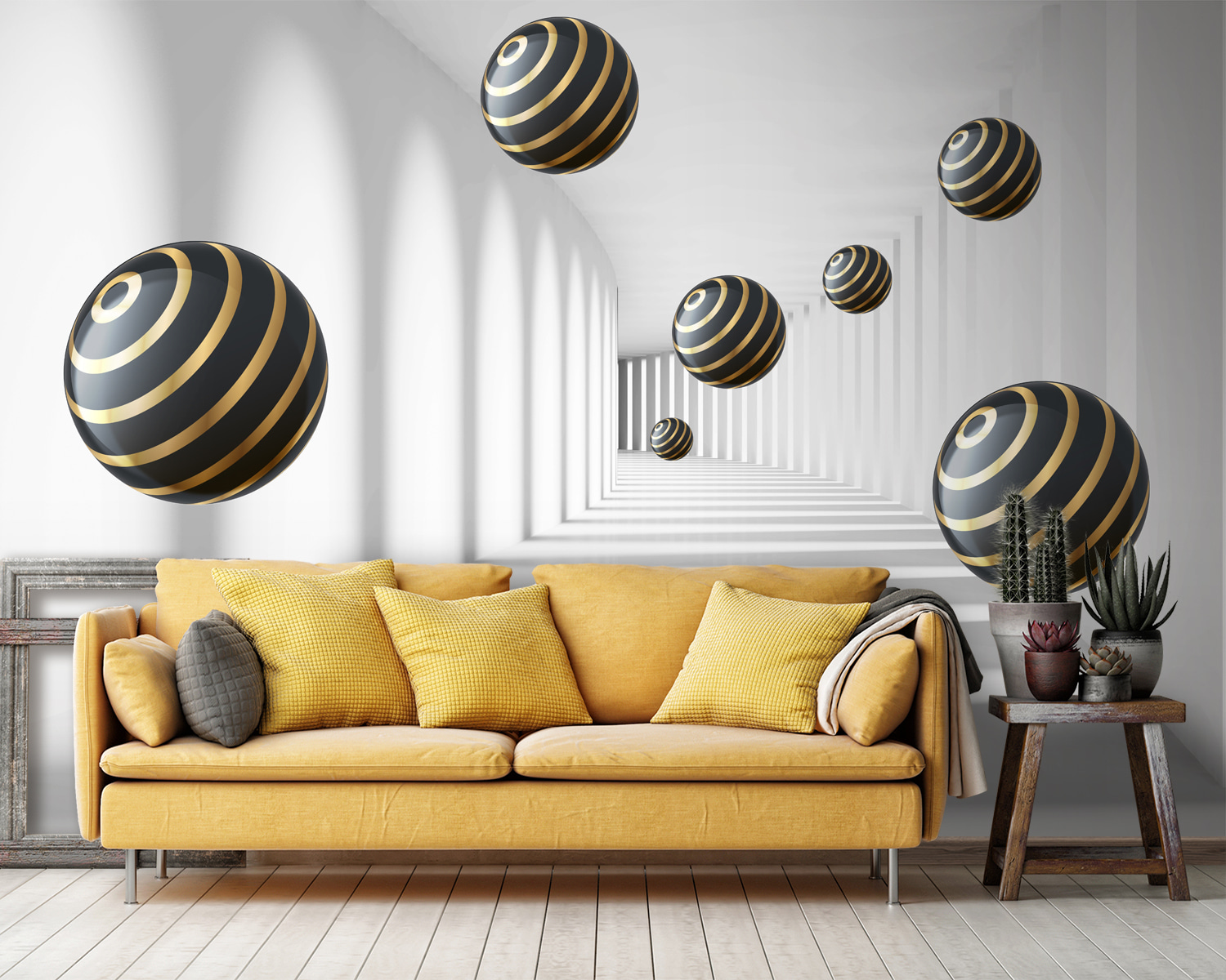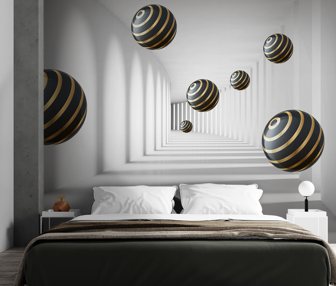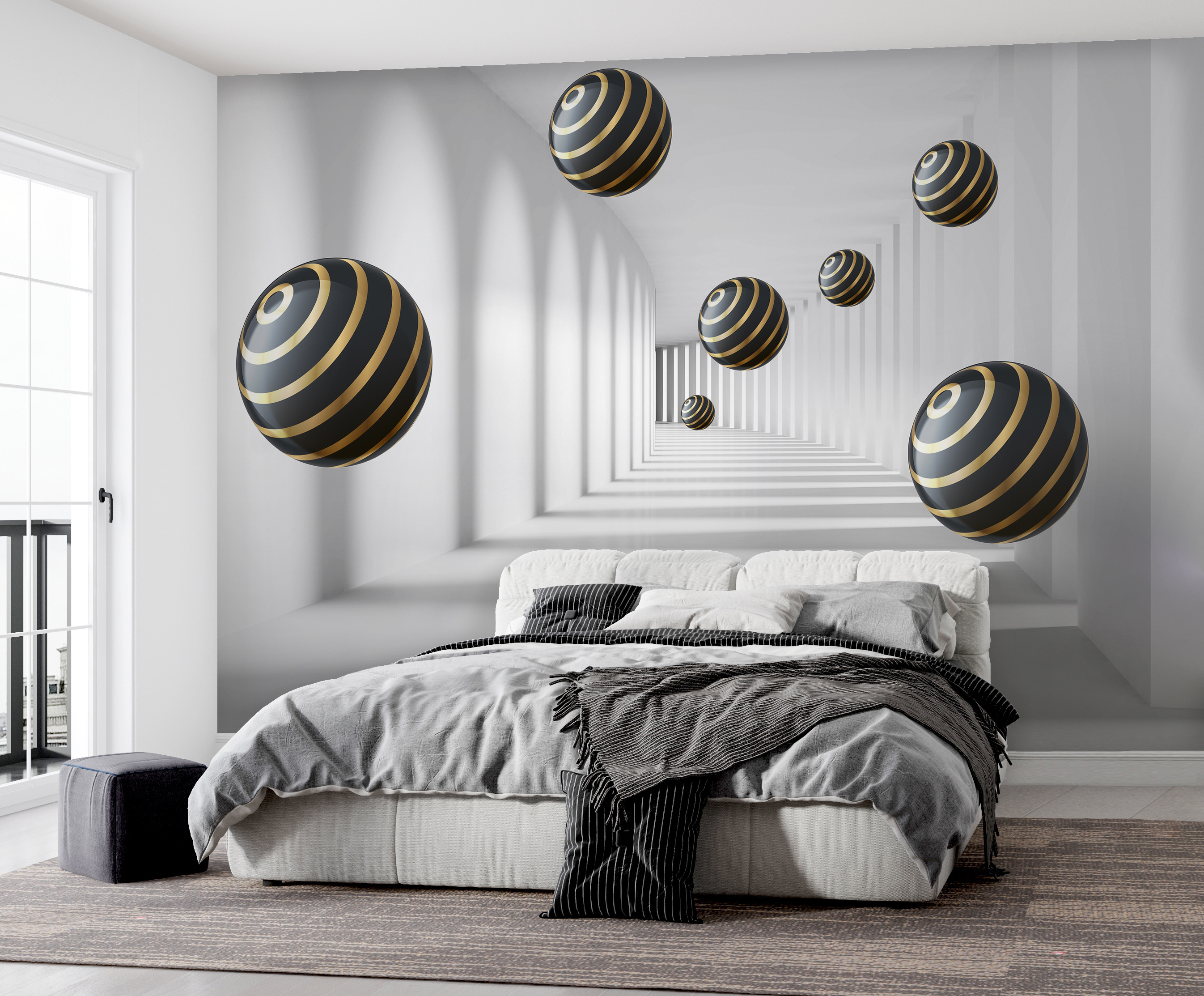 Immaginate di entrare in una stanza e di avere la sensazione di entrare in un’altra dimensione. Questo è esattamente ciò che fa “Carta da parati Striped Spheres Hover in White Corridor”. È un design moderno, quasi ipnotico, che dà la sensazione di trovarsi in un tunnel futuristico. Le sfere, con le loro eleganti strisce, sembrano fluttuare senza sforzo, creando un senso di profondità che può far sembrare lo spazio più grande. È un po’ come avere il proprio set cinematografico di fantascienza direttamente sulla parete!