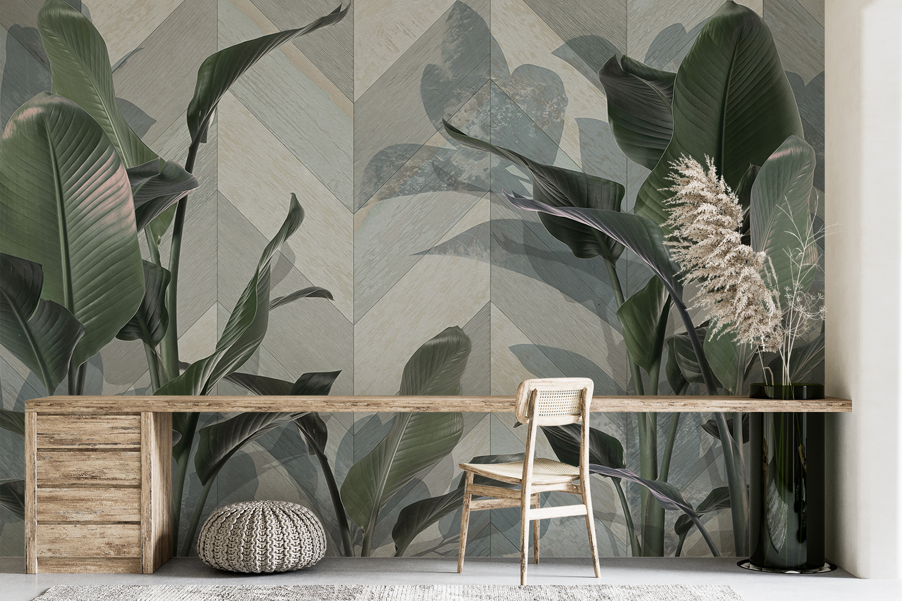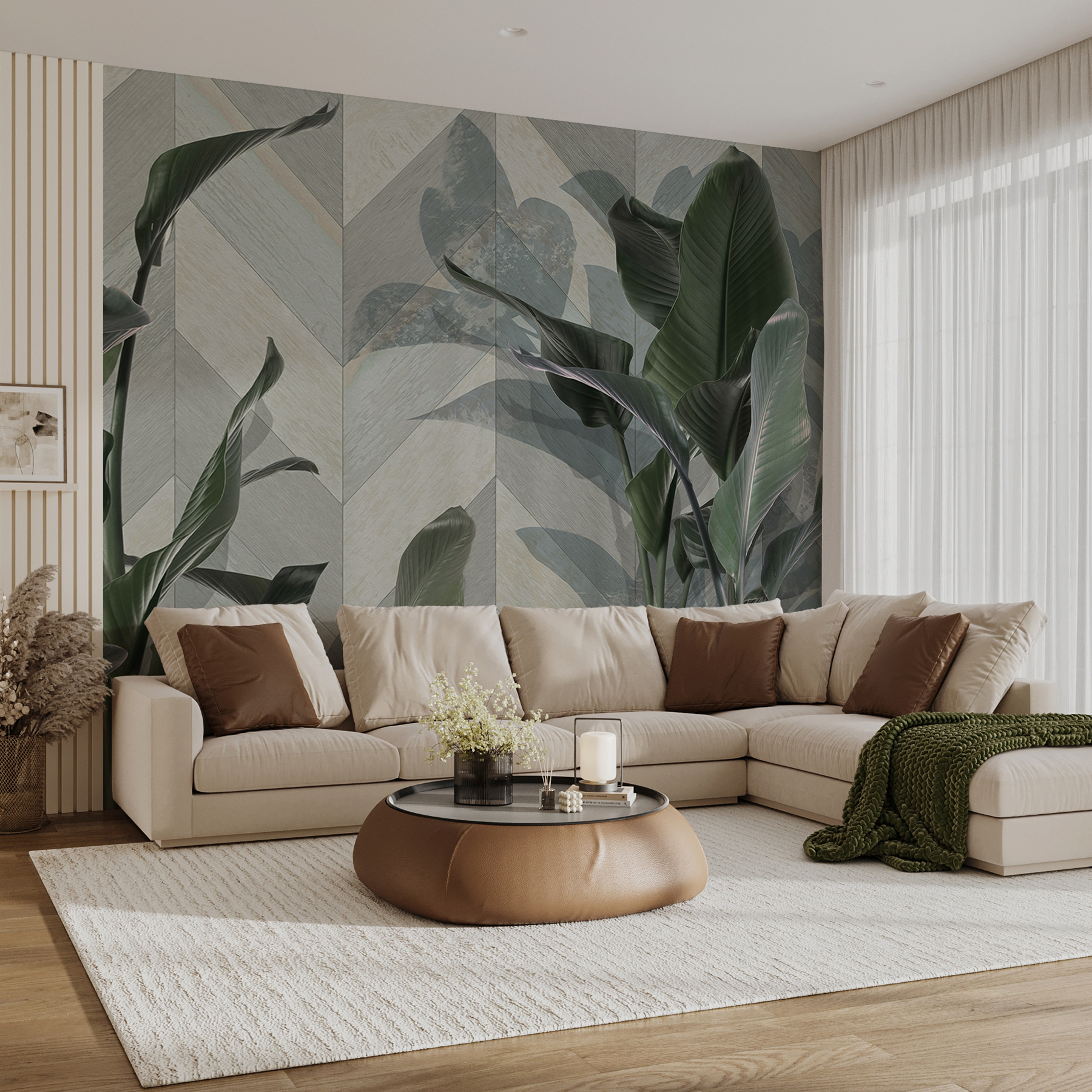 Trasformate qualsiasi stanza con questo splendido murale di foglie verdi e rigogliose su uno sfondo a motivi chic. È come portare la tranquillità di una foresta direttamente nel vostro spazio vitale! Immaginate di svegliarvi ogni mattina con la sensazione di essere in un’accogliente baita circondata dalla natura. Le foglie aggiungono un’atmosfera rinfrescante, perfetta per quei giorni in cui si desidera un po’ di aria aperta senza gli insetti o le preoccupazioni del tempo. Inoltre, i motivi sottili mantengono l’interesse: nessuno saprà se state solo sognando ad occhi aperti una fuga tropicale o se la state vivendo davvero! Questo murale non è solo una decorazione, è un’esperienza che aspetta di essere vissuta.