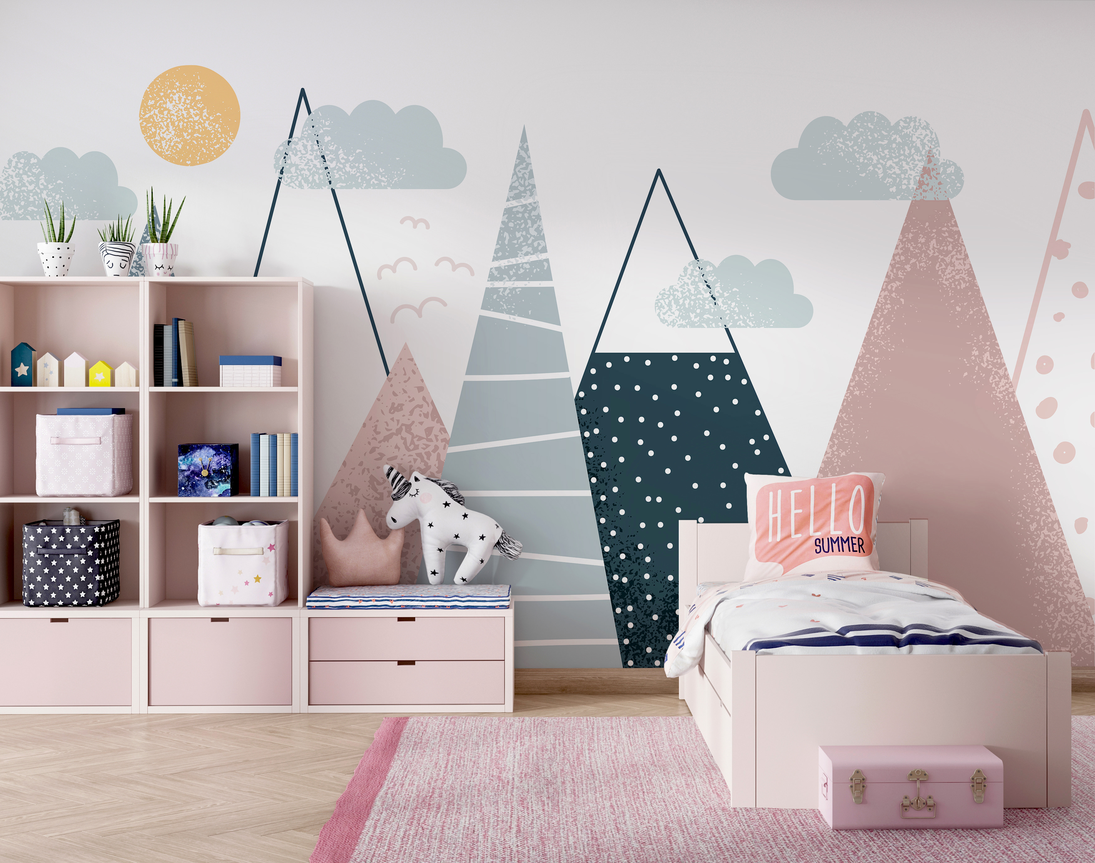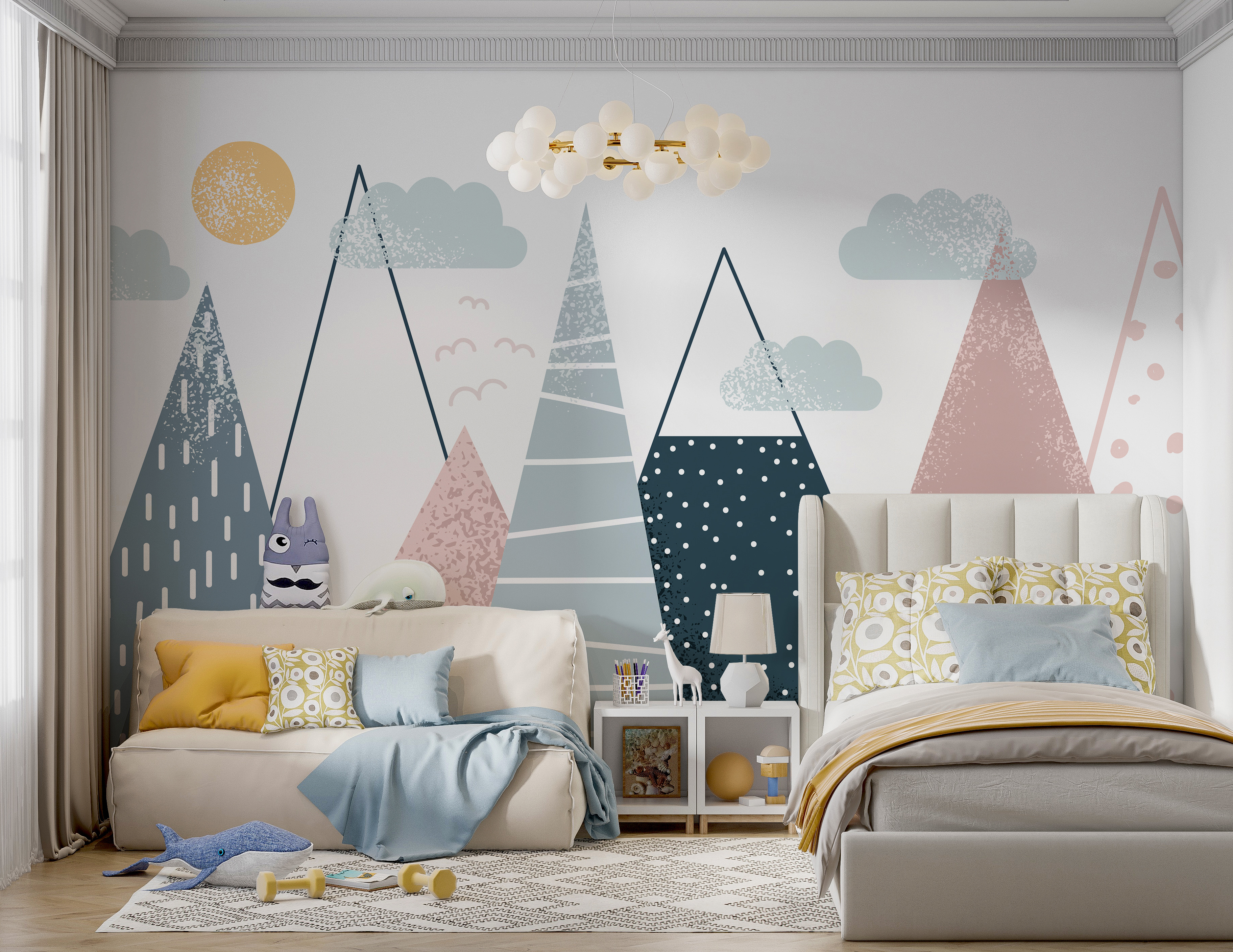 Portate i grandi spazi aperti all’interno con questo delizioso murale con montagne geometriche sotto un cielo illuminato dal sole. È come una mini-vacanza per le pareti, perfetta per stimolare l’immaginazione nelle camere dei bambini o nelle aree di gioco. I colori tenui e i motivi stravaganti lo rendono davvero affascinante. Immaginate un bambino che si addormenta sognando avventure in montagna o nuvole che sussurrano storie: dolce, vero? Inoltre, è un modo rapido per ravvivare qualsiasi spazio senza troppi fronzoli. Le pareti potrebbero persino arrossire un po’! Sul serio, questo murale è magico.