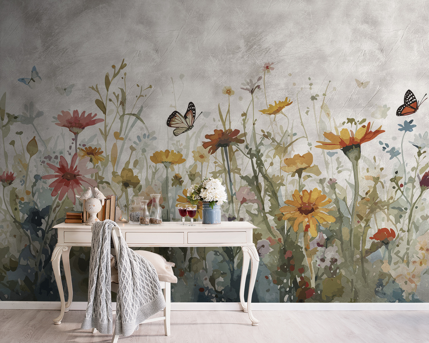 Avete voglia di abbellire il vostro spazio? Date un’occhiata a questo delizioso murale, “Butterflies Dance Above Colorful Meadow”. È come se qualcuno avesse imbottigliato la gioia di una giornata di sole in un campo di fiori selvatici e l’avesse spruzzata sulla vostra parete! Le farfalle che danzano sopra fiori luminosi sono pura felicità in mostra, perfetta per tutti coloro che hanno bisogno di un po’ di magia della natura nella loro vita interna.