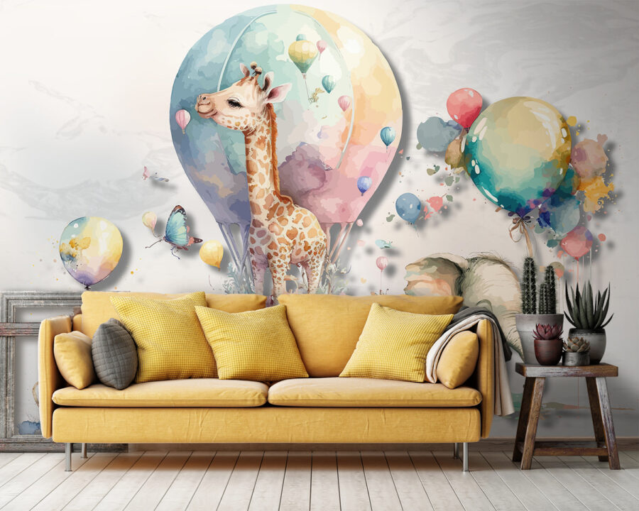 Trasformate qualsiasi spazio con l’incantevole murale “Acquerello di un leone”! Questa deliziosa opera d’arte presenta un affascinante leoncino, una graziosa giraffa che fluttua in una mongolfiera e un adorabile elefante che tiene in mano palloncini colorati, tutti dipinti con acquerelli morbidi e sognanti. È perfetta per aggiungere un tocco di fantasia alle stanze dei bambini, alle aree gioco o a qualsiasi luogo che necessiti di un tocco di magia.