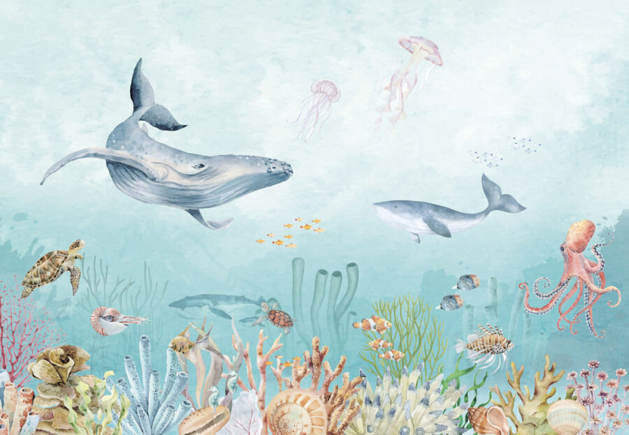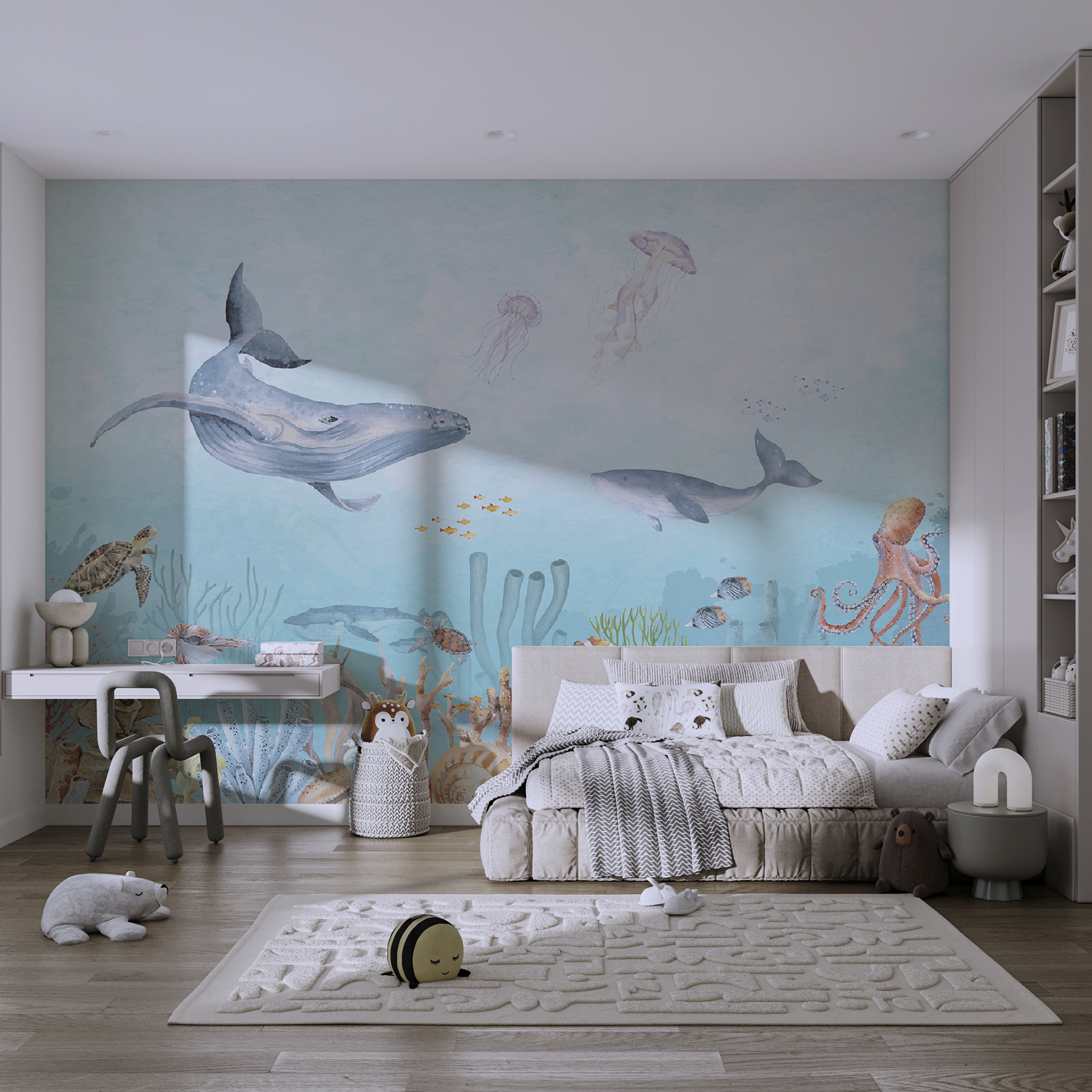 Tuffatevi in un mare di meraviglie con questo accattivante murale “Underwater Life”! Immaginate di trasformare una stanza semplice in un paradiso oceanico pieno di creature marine giocose e vibranti barriere coralline. Perfetto per stimolare l’immaginazione di bambini e ragazzi, questo murale porta la magia del blu profondo direttamente a casa vostra. Qui c’è una balena gigante – e guardate! Un piccolo gruppo di pesci pagliaccio gioca a nascondino tra gli anemoni. Che sia nella cameretta del bambino o in un bagno stravagante, aggiunge immediatamente un tocco di avventura e tranquillità. Non riuscite a sentire il dolce mormorio dell’acqua e il delicato fruscio dei tentacoli del polpo? Installatelo nel vostro spazio e guardate come gli occhi si allargano per la gioia (e forse anche qualche risatina). È più di un semplice murale, è un’evasione sottomarina senza bagnarsi, quindi fatevi sotto!