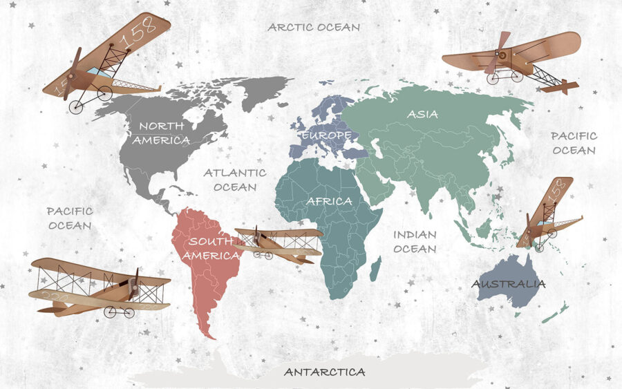 E quei simpatici aeroplanini? Fanno quasi sentire il fruscio mentre sorvolano i continenti. Ottimo per stimolare l’immaginazione prima di andare a dormire. Questa affascinante mappa non abbellisce solo le pareti, ma è una porta d’accesso per esplorare terre lontane e sognare grandi sogni! Che sia per le storie della buonanotte o per le fughe di gioco, questo murale ha un tocco speciale. Un’aggiunta deliziosa alla stanza di ogni figlia o figlio e un modo rapido per diventare il genitore più cool (non che non lo foste già). 🗺️❣️